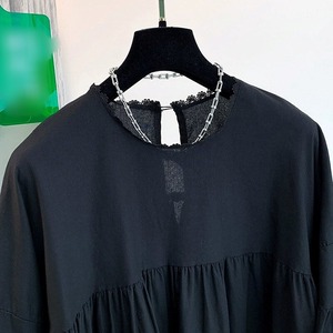 ギャザーが作るシルエットやバックのデザインが魅力的な、ラウンドネック・長袖・チュニック丈のプルオーバー・シャツブラウスです。ネックや裾のレースの縁取りやスティッチが、ガーリーで上品な印象のアイテムです。ブラックとブルーグリーンの2色から選べます。 SIZE:※測り方によって2-3cmの差が生じる場合がございます。 【M】バスト124cm 肩幅59cm 袖丈42cm 着丈72cm 【L】バスト128cm 肩幅60cm 袖丈43cm 着丈73cm 【XL】バスト132cm 肩幅61cm 袖丈44cm 着丈74cm 【2XL】バスト136cm 肩幅62cm 袖丈45cm 着丈75cm COLOR:Black、Green 素材:ポリエステル、その他 STYLE CALENDAR:春〇 夏〇 秋◎ 冬〇 お届けについて こちらの商品は海外店舗より直接発送となる為、 ご決済から到着までは、多くの場合【10日-2週間前後】でお届けしております。 ※在庫状況や輸送の混雑により、4週間前後かかる場合がございます。 注意事項 ・商品在庫切れにより注文キャンセルとさせていただく恐れもございますので、予めご了承くださいませ。 ・仕入れ工場を変えることがあるため、記載サイズと若干異なる場合がございます。 ・商品の色味は、お手持ちのスマートフォンの画面によって実物と若干異なる場合がございます。 ・イメージ違いやサイズ交換等、お客さまご都合による交換・返品はご遠慮ください。 送料について 全国一律580円。ただし10,000円以上のご注文で送料無料となります。 お支払い方法について ・クレジットカード決済(VISA/Mastercard/JCB/アメリカン・エクスプレス/ Diners Club) ・コンビニ決済/Pay-easy ※前払いのお支払い方法 ・Pay ID あと払い(コンビニ払い、口座振替) ※あと払いのお支払い方法 ・キャリア決済(d払い/au PAY(auかんたん決済)/ソフトバンク・ワイモバイルまとめて支払い) 管理番号:M-14858