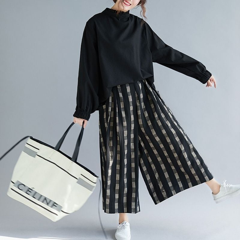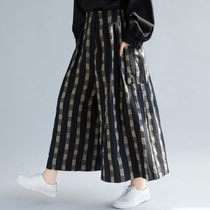 DESIGN CHECKERED WIDE LEG CROPPED PANTS 1color M-14860