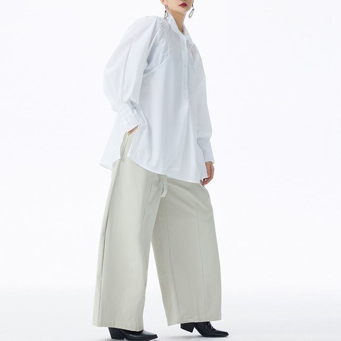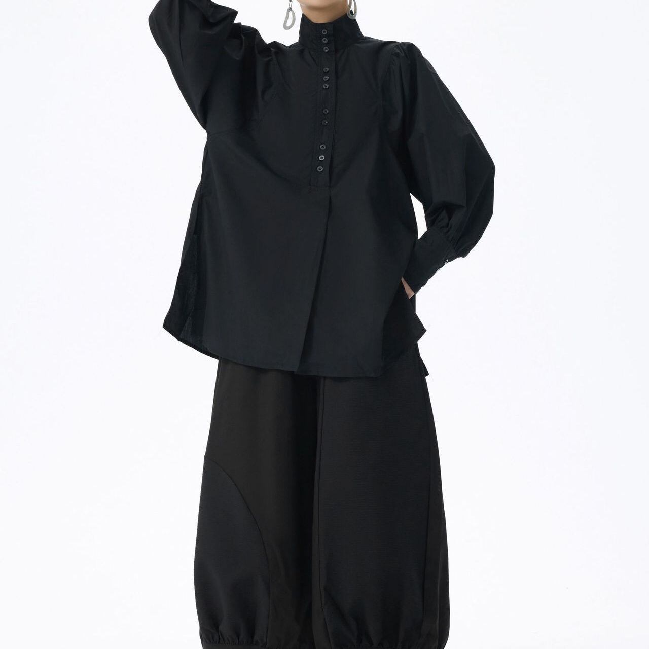 SOLID HIGH NECK LANTERN SLEEVES TUNIC SHIRT 3colors M-14878