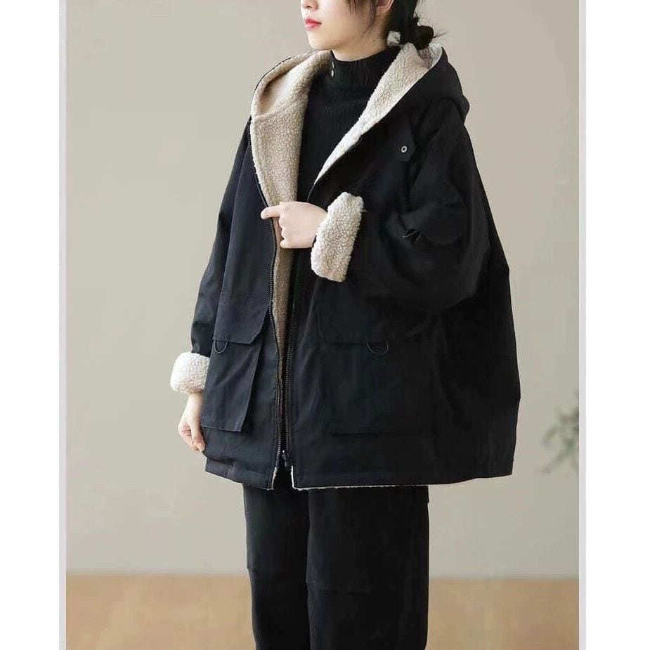 HOODED SHERPA LINING FULLZIP JACKET 3colors M-14894