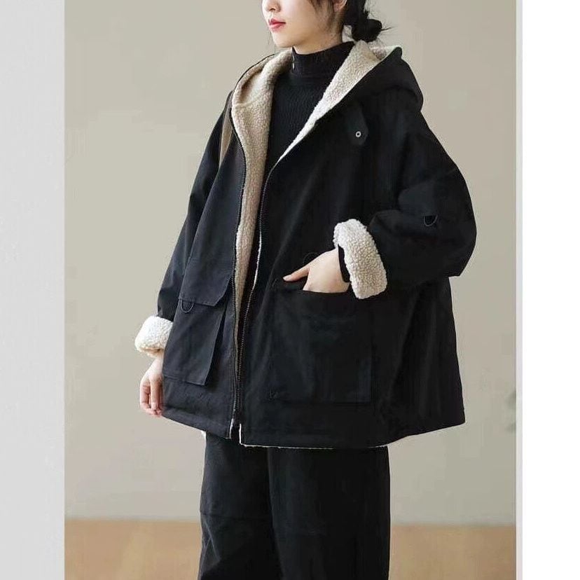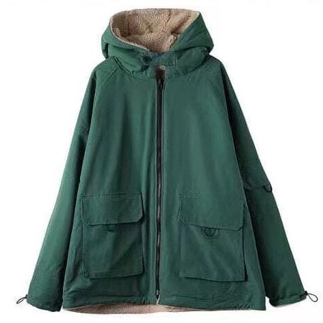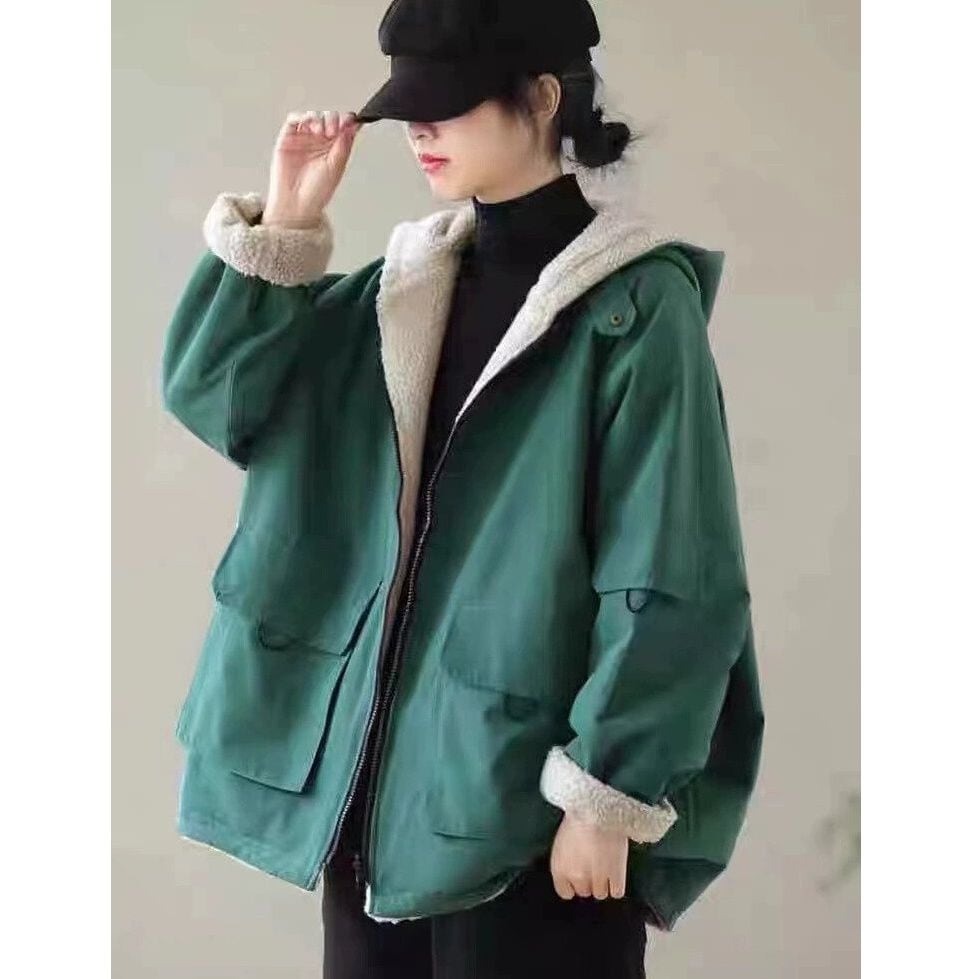 ボア素材のライニングが暖かな、フード付き・カジュアルジャケットです。フラップポケットがキュートアクセントになった、袖口にドローコードが付いたフルジップデザインです。ブラック・グリーン・オレンジレッドの3色から選べます。