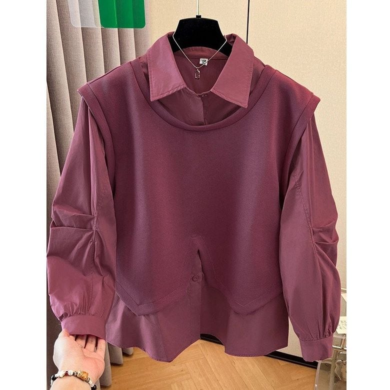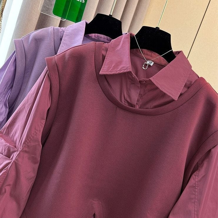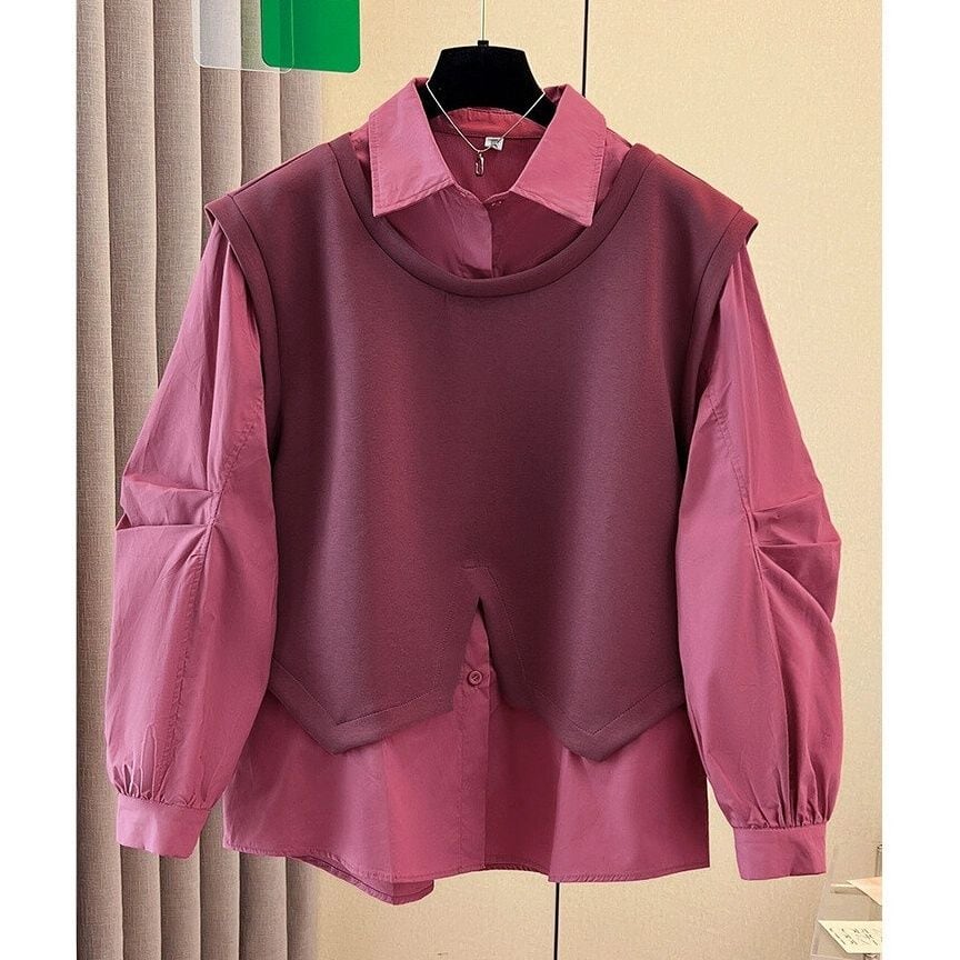 カラーシャツに同色のベストを合わせたフェイクツーピースデザインがお洒落な、ポロ襟・長袖・ラウンドカットのプルオーバートップです。ベストの裾や袖のプリーツが特徴的な、美しい色合いのアイテムです。パープルとワインレッドの2色から選べます。 SIZE:※測り方によって2-3cmの差が生じる場合がございます。 【M】バスト100cm 肩幅43cm 袖丈56cm 着丈67cm 【L】バスト104cm 肩幅44cm 袖丈57cm 着丈68cm 【XL】バスト110cm 肩幅45cm 袖丈58cm 着丈69cm 【2XL】バスト116cm 肩幅46cm 袖丈59cm 着丈70cm 【3XL】バスト122cm 肩幅47cm 袖丈60cm 着丈71cm 【4XL】バスト128cm 肩幅48cm 袖丈61cm 着丈72cm COLOR:Purple、WineRed 素材:ポリエステル、その他 STYLE CALENDAR:春〇 夏△ 秋◎ 冬◎ お届けについて こちらの商品は海外店舗より直接発送となる為、 ご決済から到着までは、多くの場合【10日-2週間前後】でお届けしております。 ※在庫状況や輸送の混雑により、4週間前後かかる場合がございます。 注意事項 ・商品在庫切れにより注文キャンセルとさせていただく恐れもございますので、予めご了承くださいませ。 ・仕入れ工場を変えることがあるため、記載サイズと若干異なる場合がございます。 ・商品の色味は、お手持ちのスマートフォンの画面によって実物と若干異なる場合がございます。 ・イメージ違いやサイズ交換等、お客さまご都合による交換・返品はご遠慮ください。 送料について 全国一律580円。ただし10,000円以上のご注文で送料無料となります。 お支払い方法について ・クレジットカード決済(VISA/Mastercard/JCB/アメリカン・エクスプレス/ Diners Club) ・コンビニ決済/Pay-easy ※前払いのお支払い方法 ・Pay ID あと払い(コンビニ払い、口座振替) ※あと払いのお支払い方法 ・キャリア決済(d払い/au PAY(auかんたん決済)/ソフトバンク・ワイモバイルまとめて支払い) 管理番号:M-14895