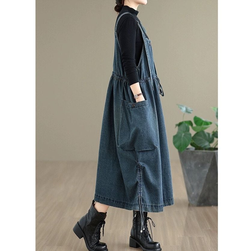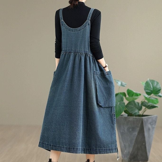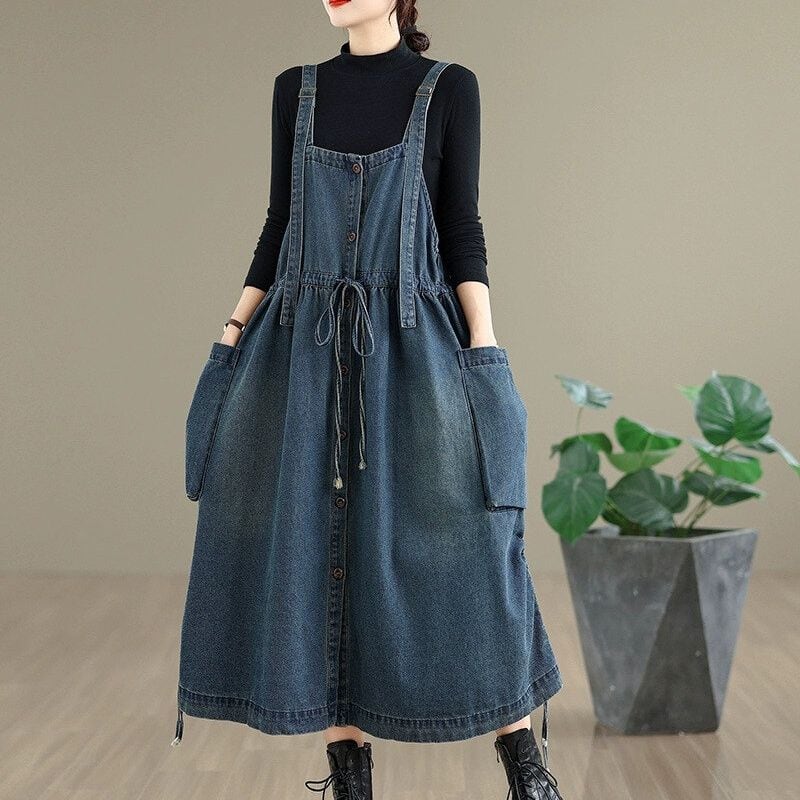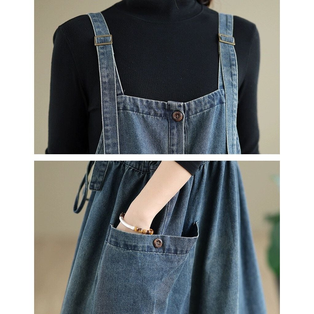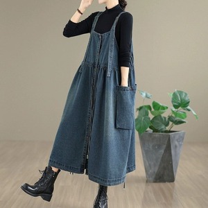 DENIM A-LINE MIDI STRAP JUMPER DRESS 1color M-14901
