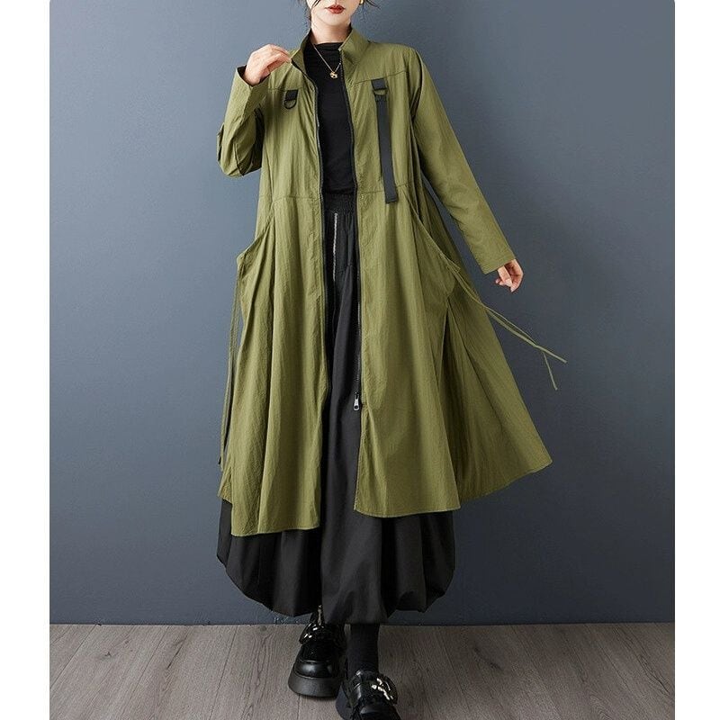 STAND COLLAR A-LINE MIDI FULLZIP WINDBREAKER COAT 1color M-14905
