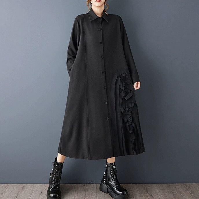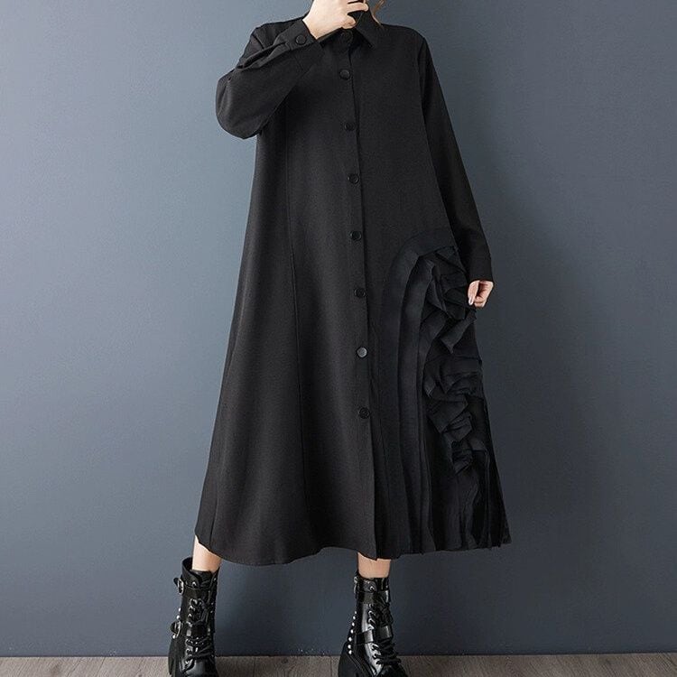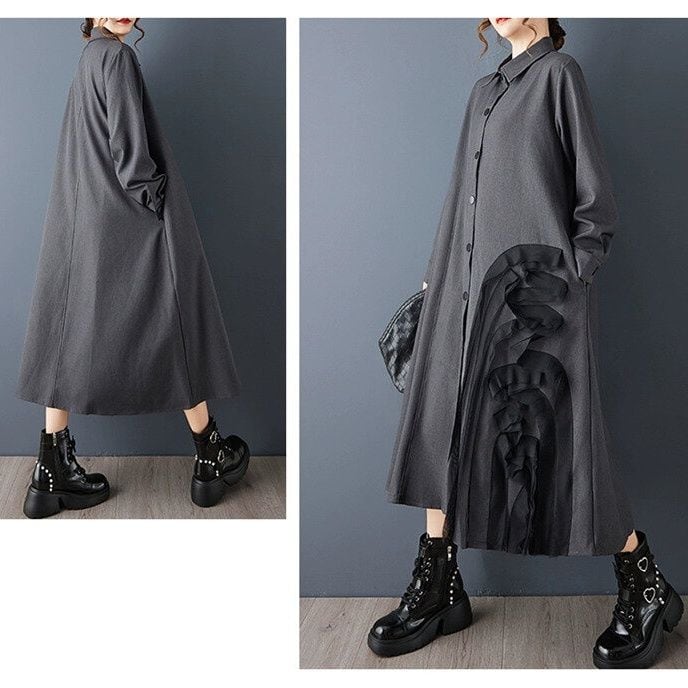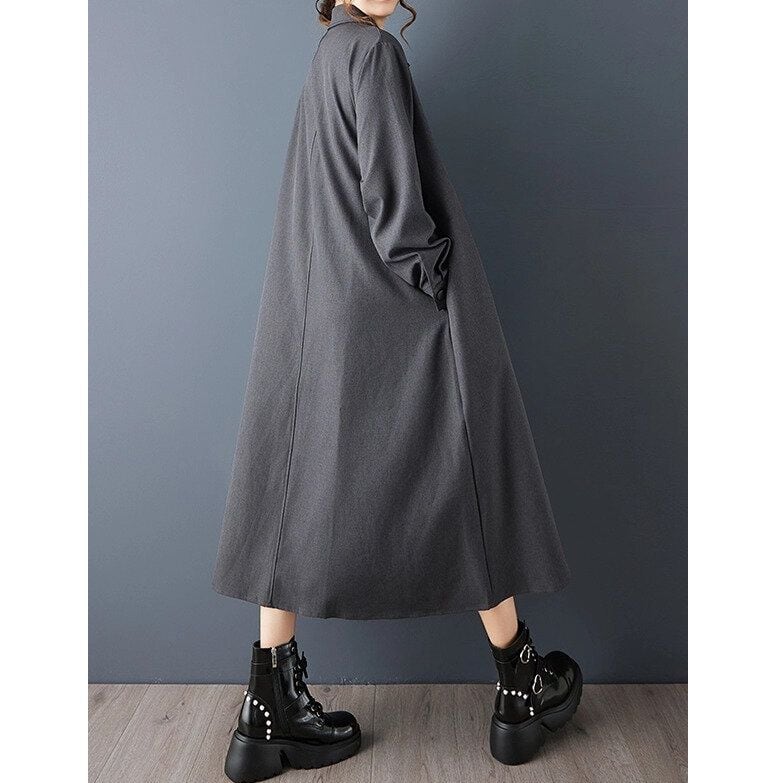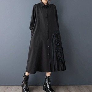 LONG SLEEVES A-LINE MIDI DESIGN SHIRT DRESS 2colors M-14915