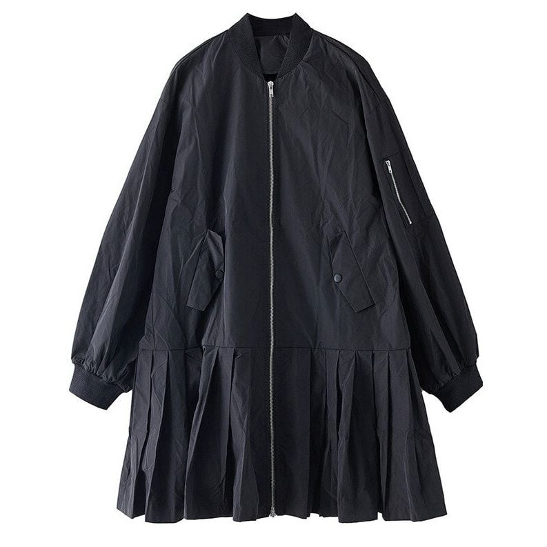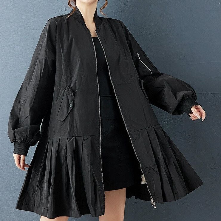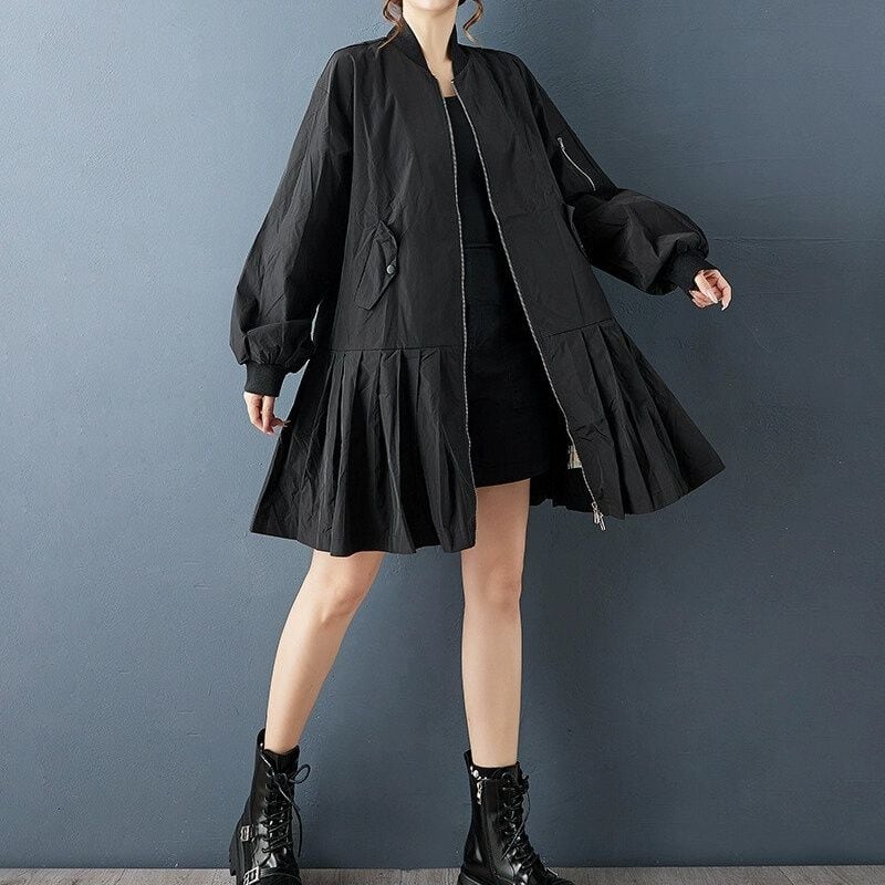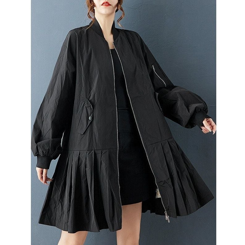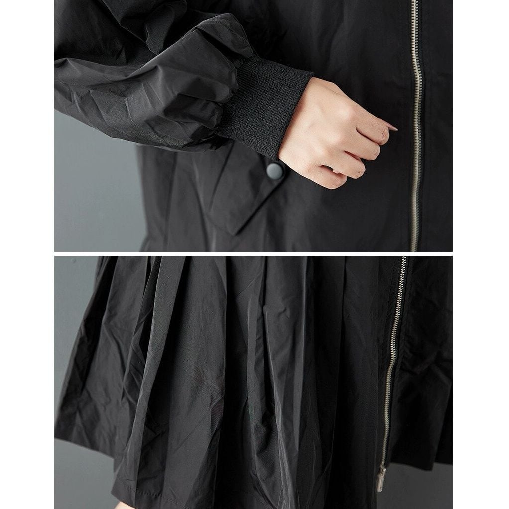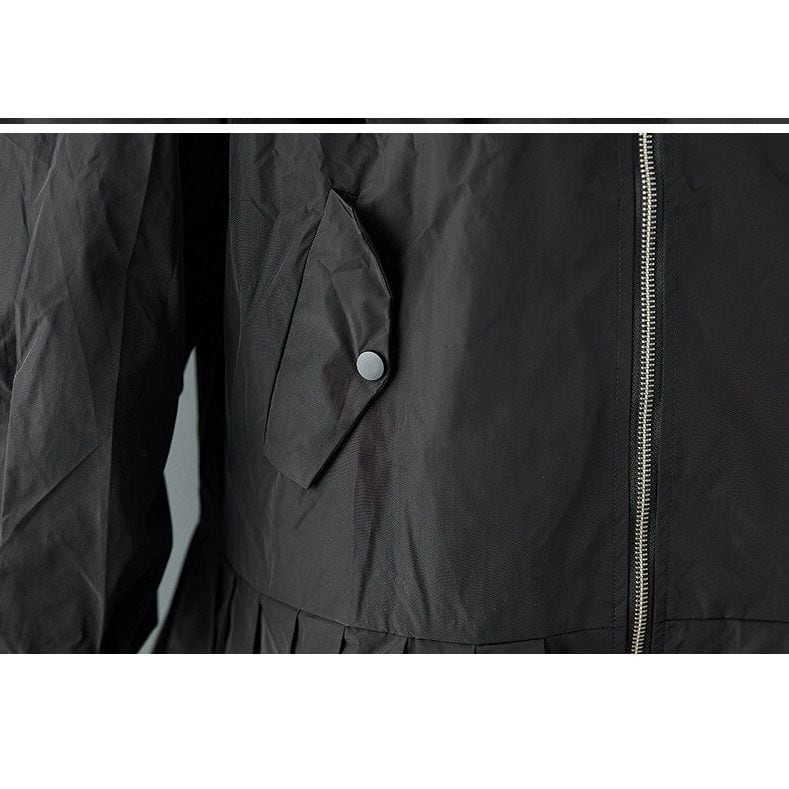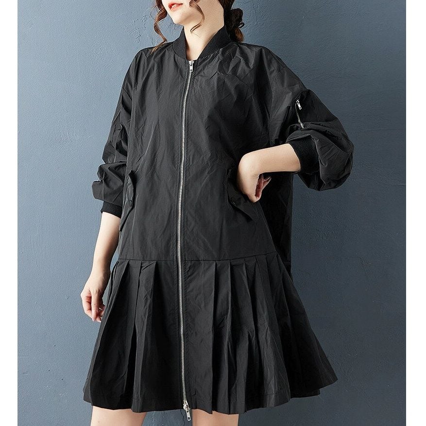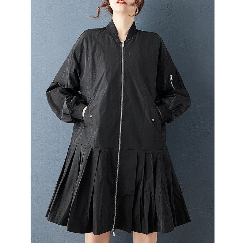 BLACK BASEBALL COLLAR PLEATED HEM FULLZIP MINI DRESS JACKET 1color M-14919