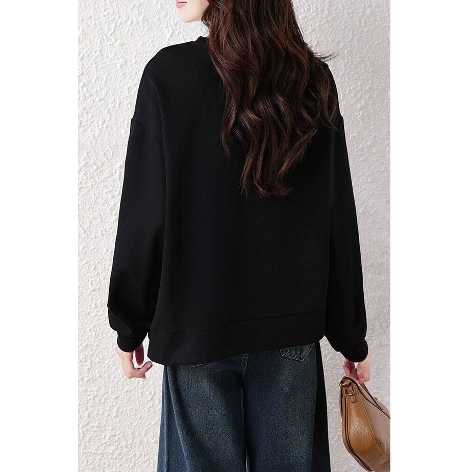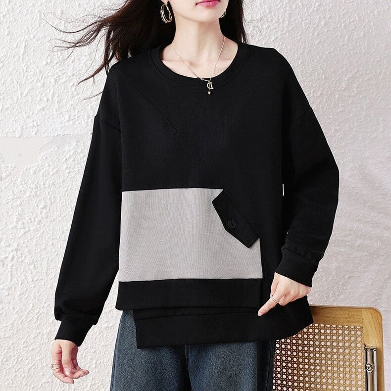 コントラストスティッチやボタンの付いたフラップ飾りがお洒落な、ラウンドネックのスウェットシャツです。イレギュラーな裾のラインが目を惹く、モノトーンカラーでコーディネートしやすいカジュアルアイテムです。 SIZE:※測り方によって2-3cmの差が生じる場合がございます。 【L】バスト108cm 肩幅39cm 袖丈57cm 着丈62cm 【XL】バスト113cm 肩幅40.2cm 袖丈57.5cm 着丈63cm 【2XL】バスト118cm 肩幅41.4cm 袖丈58cm 着丈64cm 【3XL】バスト123cm 肩幅42.6cm 袖丈58.5cm 着丈65cm 【4XL】バスト128cm 肩幅43.8cm 袖丈59cm 着丈66cm 【5XL】バスト133cm 肩幅46.2cm 袖丈59.5cm 着丈67cm COLOR:Black 素材:ポリエステル、その他 モデル情報:身長165cm 体重45kg STYLE CALENDAR:春〇 夏〇 秋◎ 冬〇 お届けについて こちらの商品は海外店舗より直接発送となる為、 ご決済から到着までは、多くの場合【10日-2週間前後】でお届けしております。 ※在庫状況や輸送の混雑により、4週間前後かかる場合がございます。 注意事項 ・商品在庫切れにより注文キャンセルとさせていただく恐れもございますので、予めご了承くださいませ。 ・仕入れ工場を変えることがあるため、記載サイズと若干異なる場合がございます。 ・商品の色味は、お手持ちのスマートフォンの画面によって実物と若干異なる場合がございます。 ・イメージ違いやサイズ交換等、お客さまご都合による交換・返品はご遠慮ください。 送料について 全国一律580円。ただし10,000円以上のご注文で送料無料となります。 お支払い方法について ・クレジットカード決済(VISA/Mastercard/JCB/アメリカン・エクスプレス/ Diners Club) ・コンビニ決済/Pay-easy ※前払いのお支払い方法 ・Pay ID あと払い(コンビニ払い、口座振替) ※あと払いのお支払い方法 ・キャリア決済(d払い/au PAY(auかんたん決済)/ソフトバンク・ワイモバイルまとめて支払い) 管理番号:M-14923