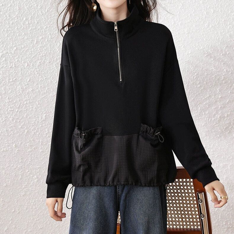 ドローコードが付いたポケットや裾のスティッチがお洒落な、ハーフジップ・長袖・プルオーバートップです。ブラックの単色で合わせやすい、カジュアルなアイテムです。 SIZE:※測り方によって2-3cmの差が生じる場合がございます。 【L】バスト108cm 肩幅40cm 袖丈55cm 着丈63cm 【XL】バスト112cm 肩幅41cm 袖丈56cm 着丈64cm 【2XL】バスト116cm 肩幅42cm 袖丈57cm 着丈65cm 【3XL】バスト120cm 肩幅43cm 袖丈58cm 着丈66cm 【4XL】バスト124cm 肩幅44cm 袖丈59cm 着丈67cm 【5XL】バスト128cm 肩幅45cm 袖丈60cm 着丈68cm COLOR:Black 素材:ポリエステル、その他 モデル情報:身長165cm 体重45kg STYLE CALENDAR:春〇 夏〇 秋◎ 冬〇 お届けについて こちらの商品は海外店舗より直接発送となる為、 ご決済から到着までは、多くの場合【10日-2週間前後】でお届けしております。 ※在庫状況や輸送の混雑により、4週間前後かかる場合がございます。 注意事項 ・商品在庫切れにより注文キャンセルとさせていただく恐れもございますので、予めご了承くださいませ。 ・仕入れ工場を変えることがあるため、記載サイズと若干異なる場合がございます。 ・商品の色味は、お手持ちのスマートフォンの画面によって実物と若干異なる場合がございます。 ・イメージ違いやサイズ交換等、お客さまご都合による交換・返品はご遠慮ください。 送料について 全国一律580円。ただし10,000円以上のご注文で送料無料となります。 お支払い方法について ・クレジットカード決済(VISA/Mastercard/JCB/アメリカン・エクスプレス/ Diners Club) ・コンビニ決済/Pay-easy ※前払いのお支払い方法 ・Pay ID あと払い(コンビニ払い、口座振替) ※あと払いのお支払い方法 ・キャリア決済(d払い/au PAY(auかんたん決済)/ソフトバンク・ワイモバイルまとめて支払い) 管理番号:M-14924
