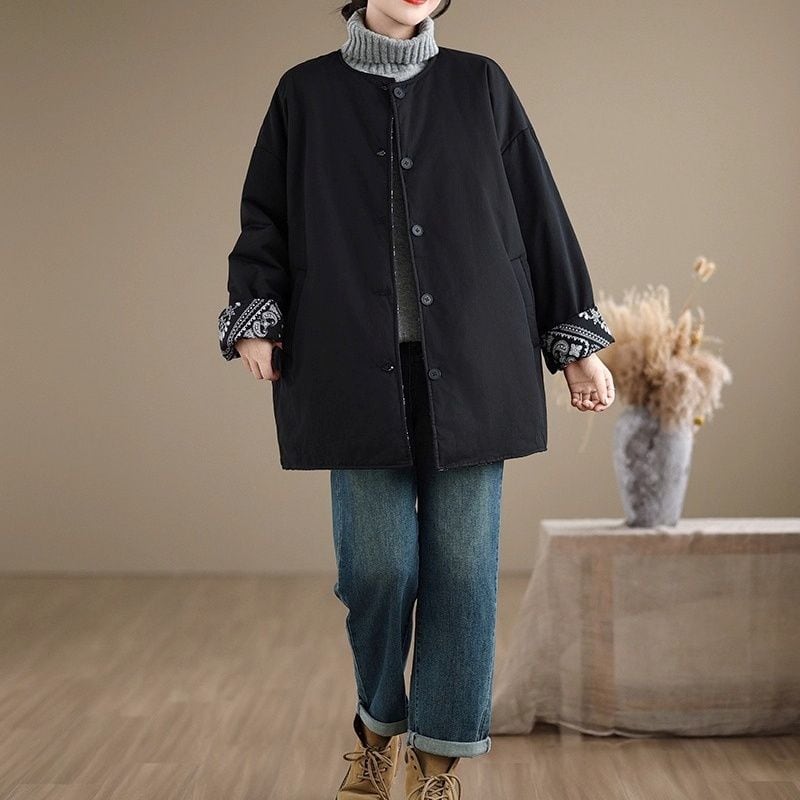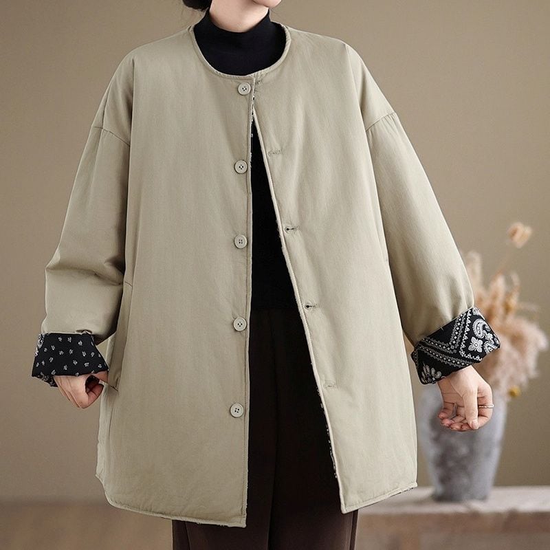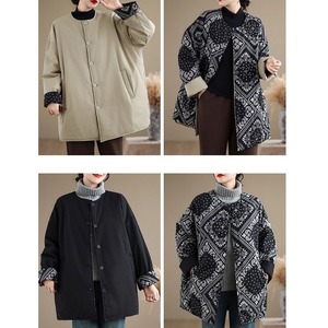 無地とペイズリー柄のリバーシブルデザインがお洒落な、襟なし・長袖・チュニック丈の中綿ジャケットです。ボタンダウンにボックスカットのシンプルなシルエットと、落ち着いた色味で使いやすいカジュアルアイテムです。色は3色から選べます。 SIZE:※測り方によって2-3cmの差が生じる場合がございます。 【L】バスト134cm 肩幅64cm 袖丈56cm 着丈76cm 【XL】バスト138cm 肩幅65cm 袖丈57cm 着丈77cm COLOR:Black、Apricot、Army Green 素材:ポリエステル、その他 モデル着用サイズ:L モデル情報:身長161cm 体重49kg STYLE CALENDAR:春〇 夏△ 秋◎ 冬◎ お届けについて こちらの商品は海外店舗より直接発送となる為、 ご決済から到着までは、多くの場合【10日-2週間前後】でお届けしております。 ※在庫状況や輸送の混雑により、4週間前後かかる場合がございます。 注意事項 ・商品在庫切れにより注文キャンセルとさせていただく恐れもございますので、予めご了承くださいませ。 ・仕入れ工場を変えることがあるため、記載サイズと若干異なる場合がございます。 ・商品の色味は、お手持ちのスマートフォンの画面によって実物と若干異なる場合がございます。 ・イメージ違いやサイズ交換等、お客さまご都合による交換・返品はご遠慮ください。 送料について 全国一律580円。ただし10,000円以上のご注文で送料無料となります。 お支払い方法について ・クレジットカード決済(VISA/Mastercard/JCB/アメリカン・エクスプレス/ Diners Club) ・コンビニ決済/Pay-easy ※前払いのお支払い方法 ・Pay ID あと払い(コンビニ払い、口座振替) ※あと払いのお支払い方法 ・キャリア決済(d払い/au PAY(auかんたん決済)/ソフトバンク・ワイモバイルまとめて支払い) 管理番号:M-14935