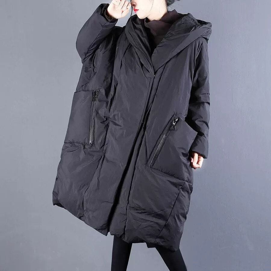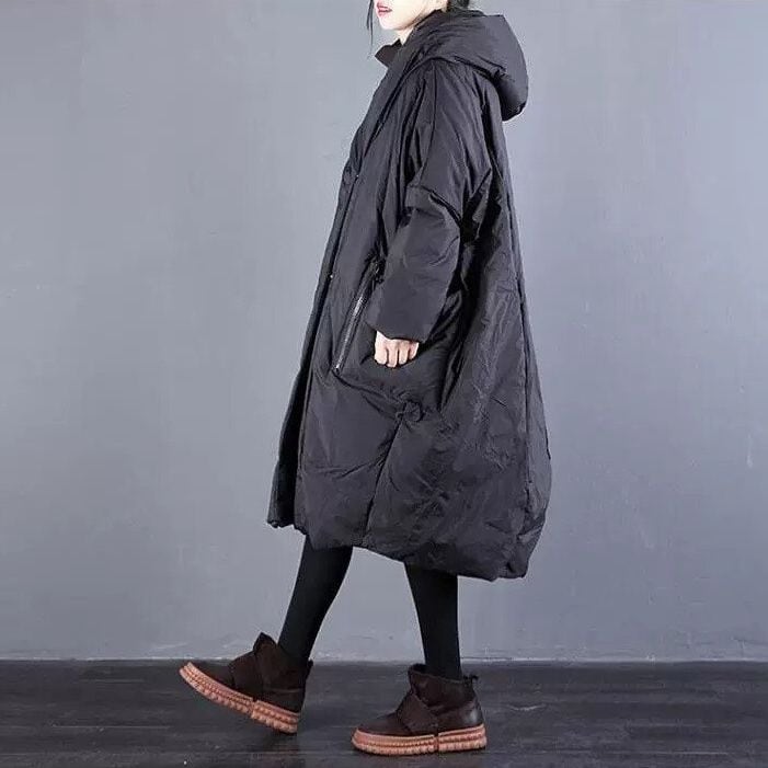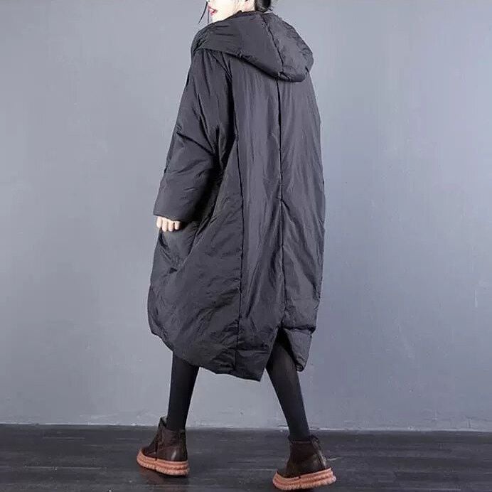 SOLID HOODED MIDI OVERSIZED PADDED COAT 2colors M-14942
