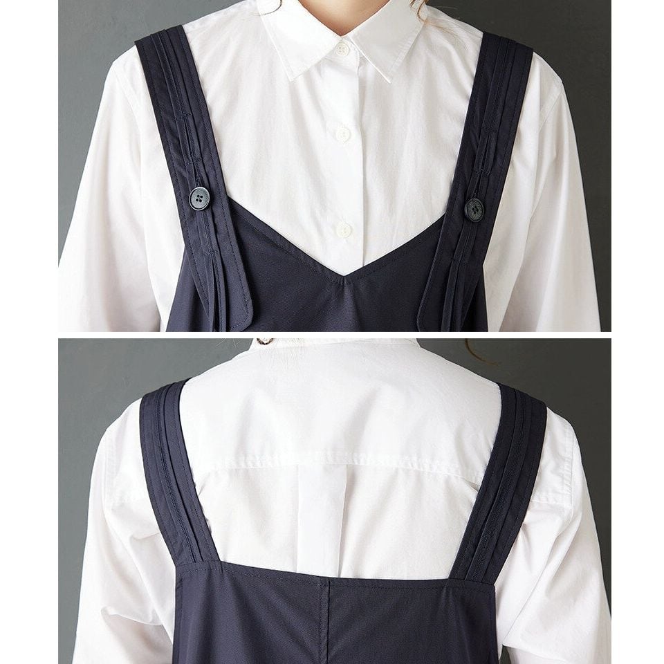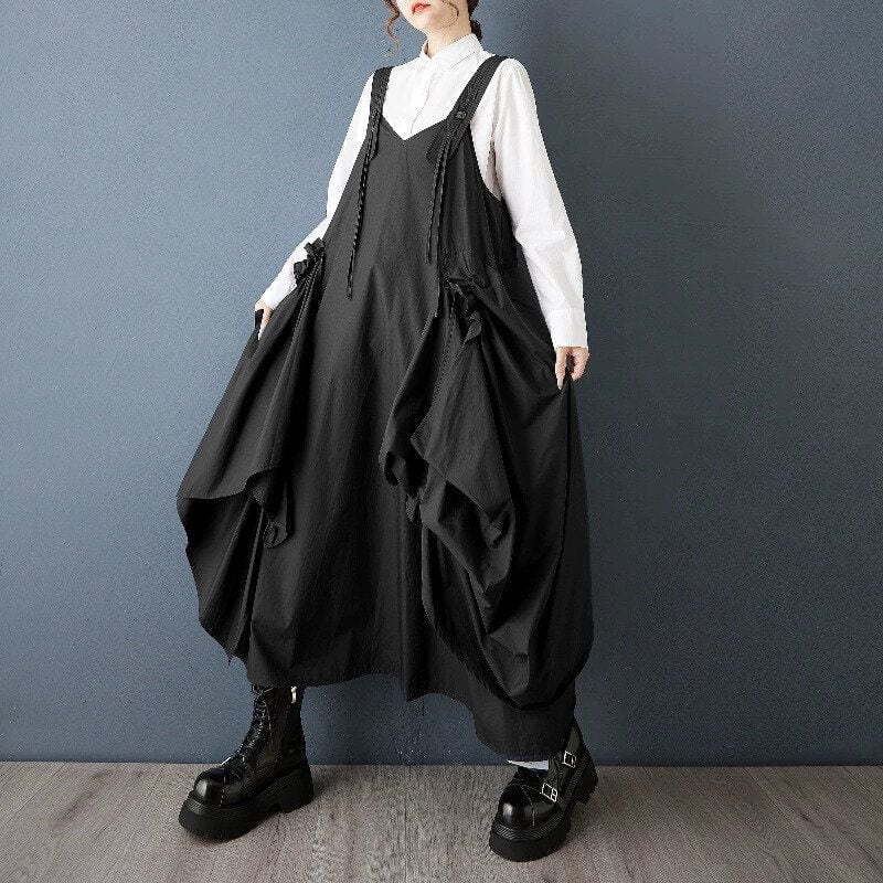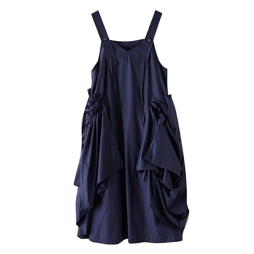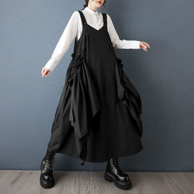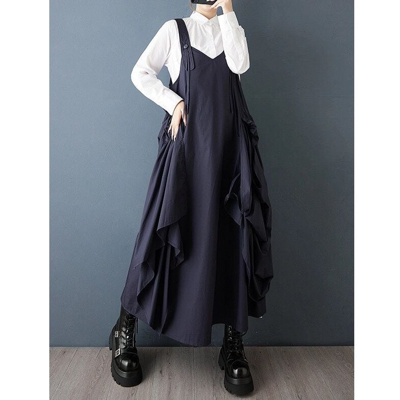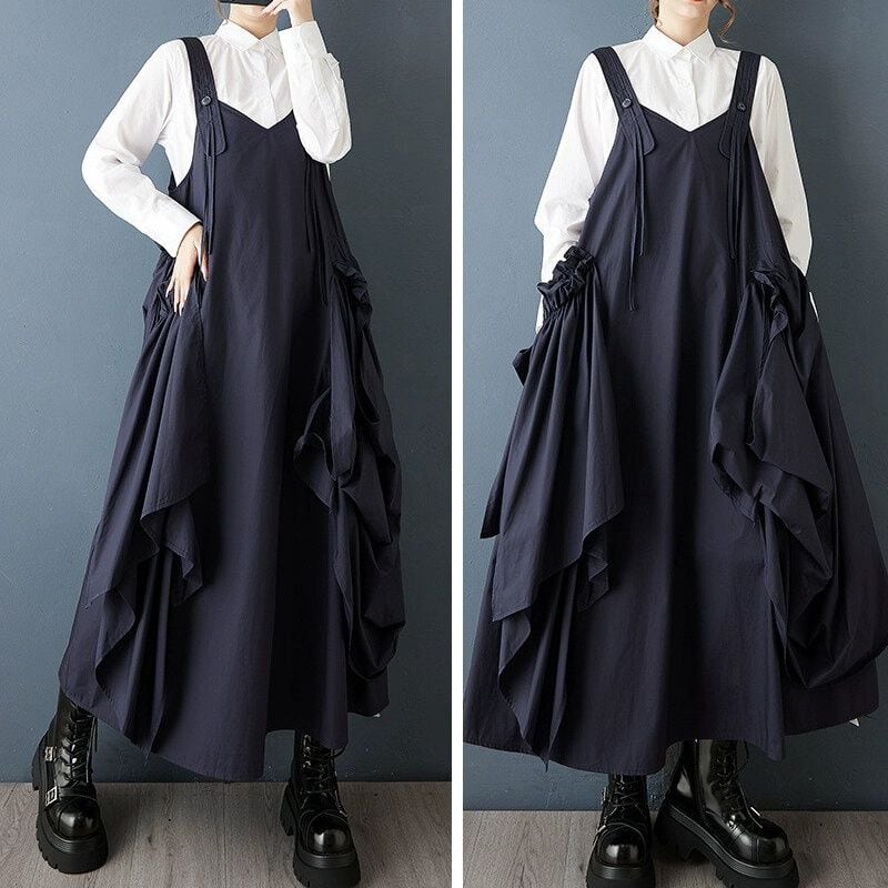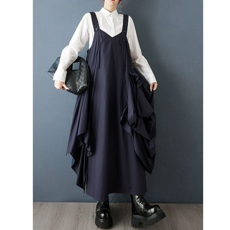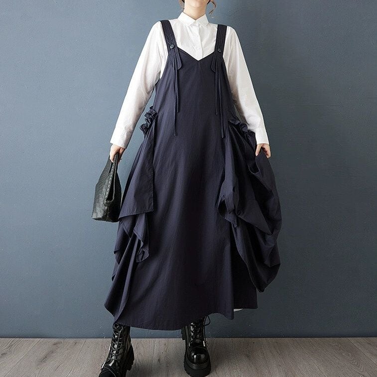 SOLID SIDE FLAP FRILL DESIGN LONG STRAP JUMPER DRESS 2colors M-14956