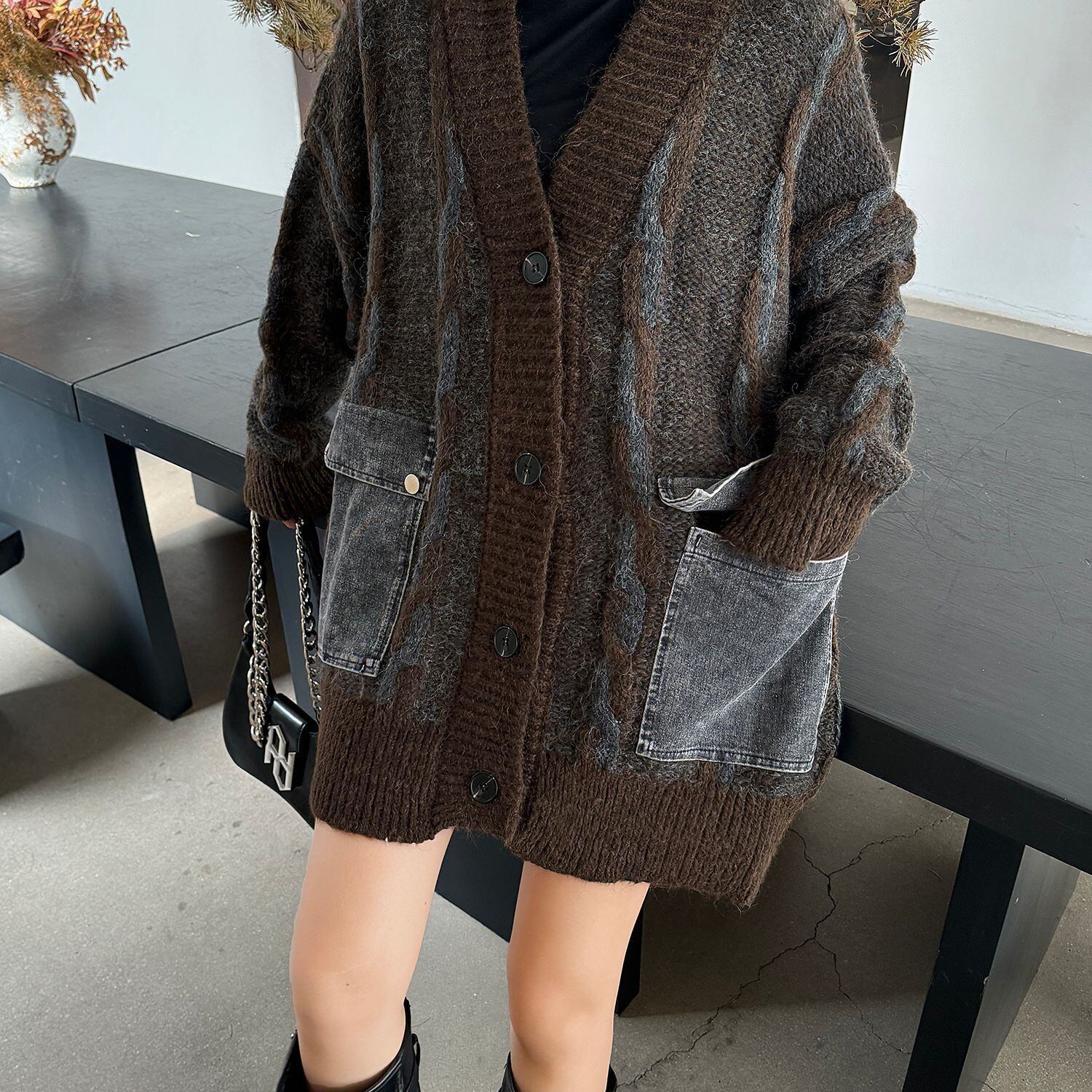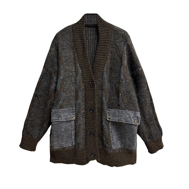 DENIM FLAP POCKET V-NECK KNIT CARDIGAN 2colors M-14991