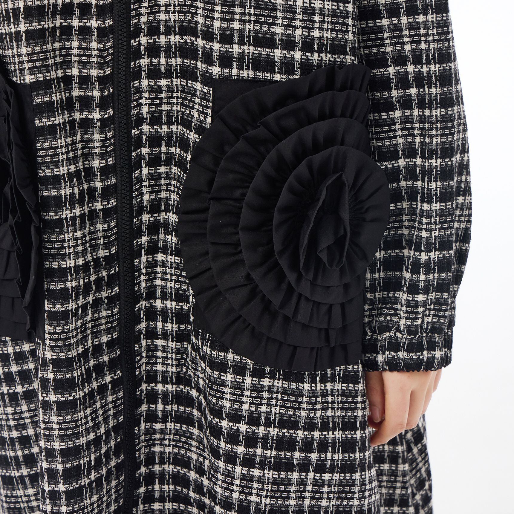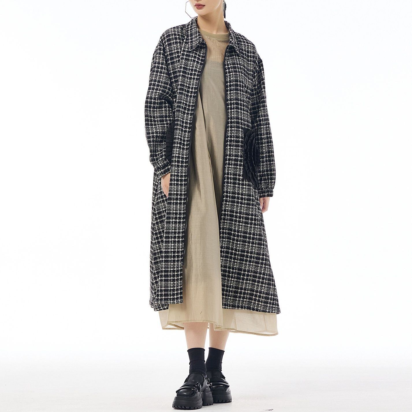 3D FLOWER MOTIF FULLZIP MIDI DESIGN COAT 2colors M-14994