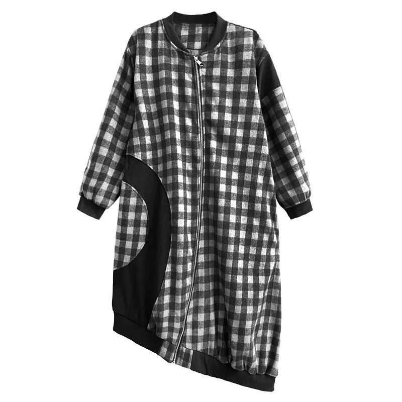 PLAID COLLARLESS ASYMMETRIC MIDI FULLZIP CASUAL COAT 2colors M-15003