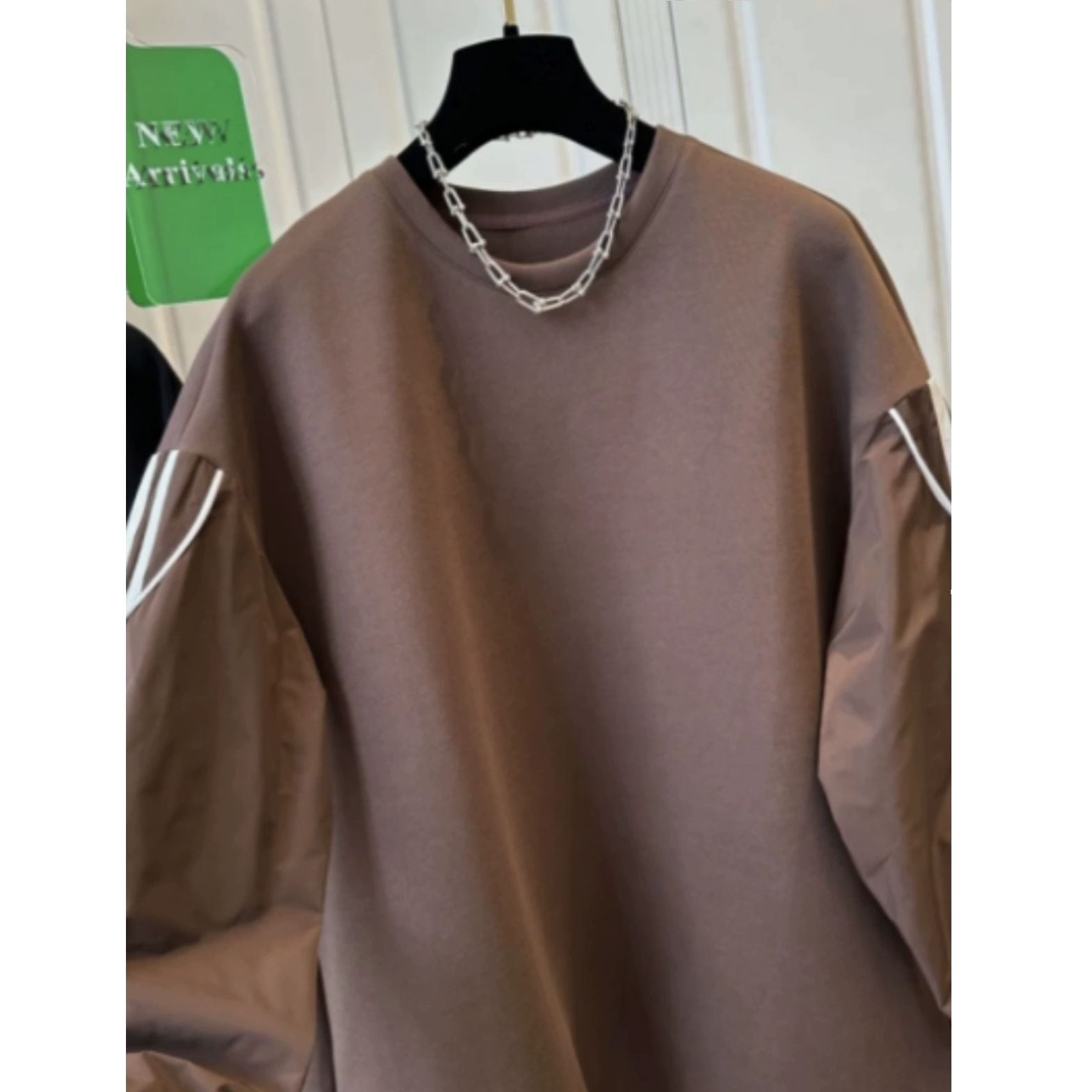 スリーブにストライプが施されたオーバーサイズスウェット。スポーティでカジュアルなスタイルに最適。