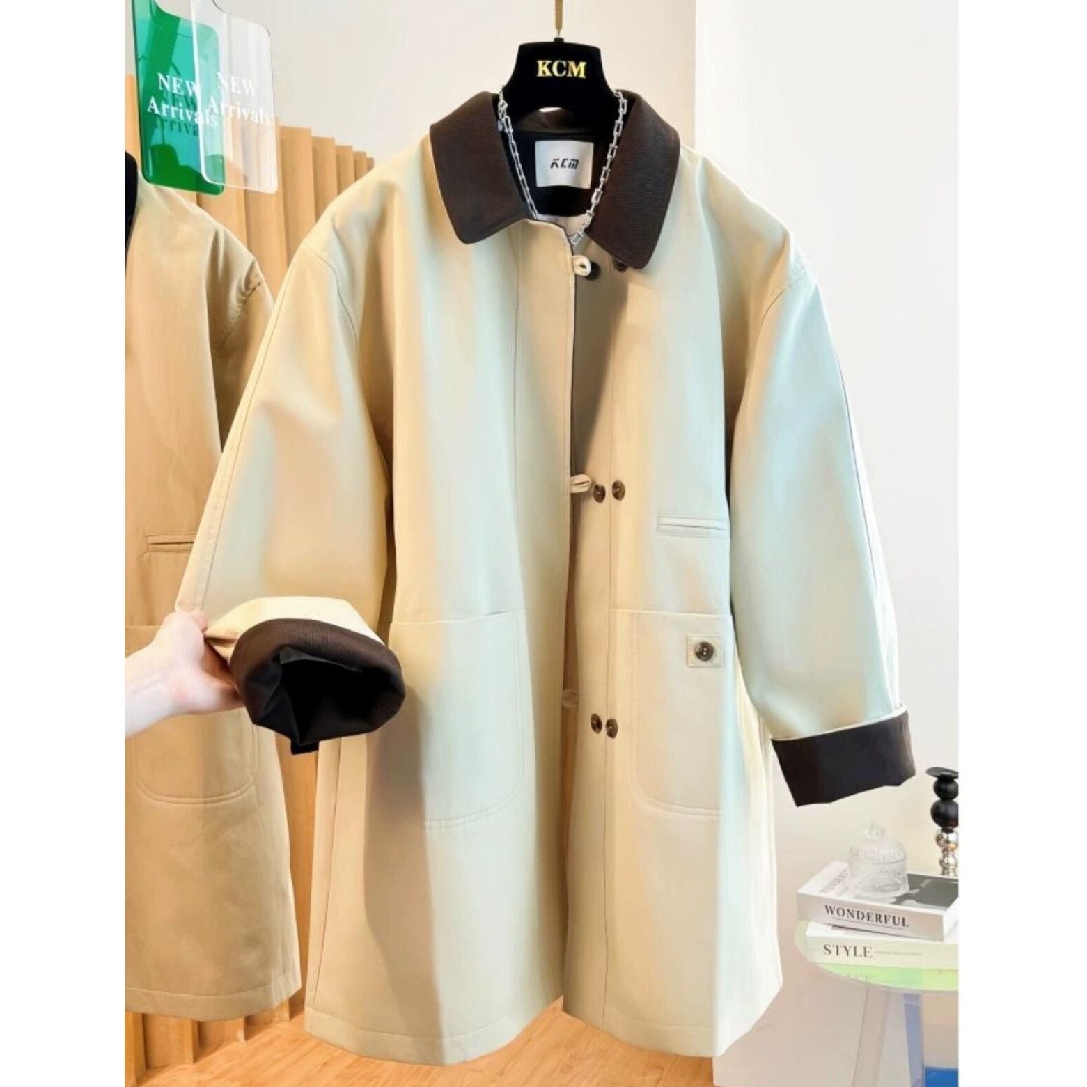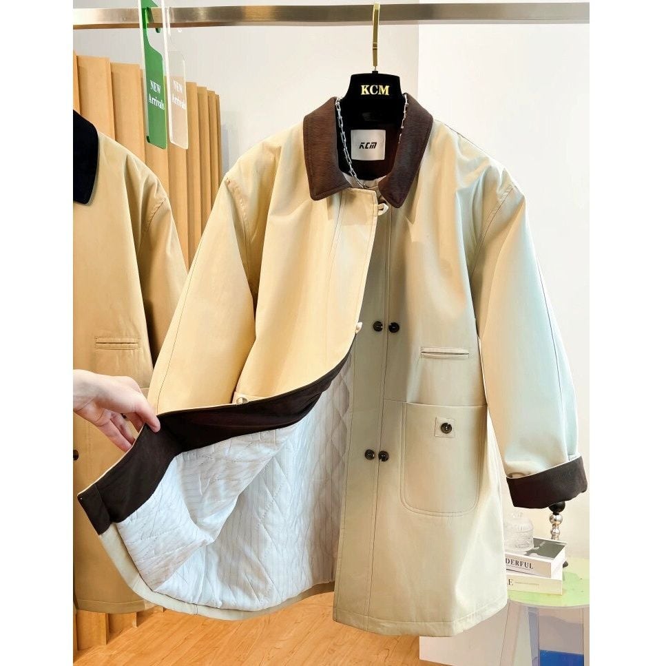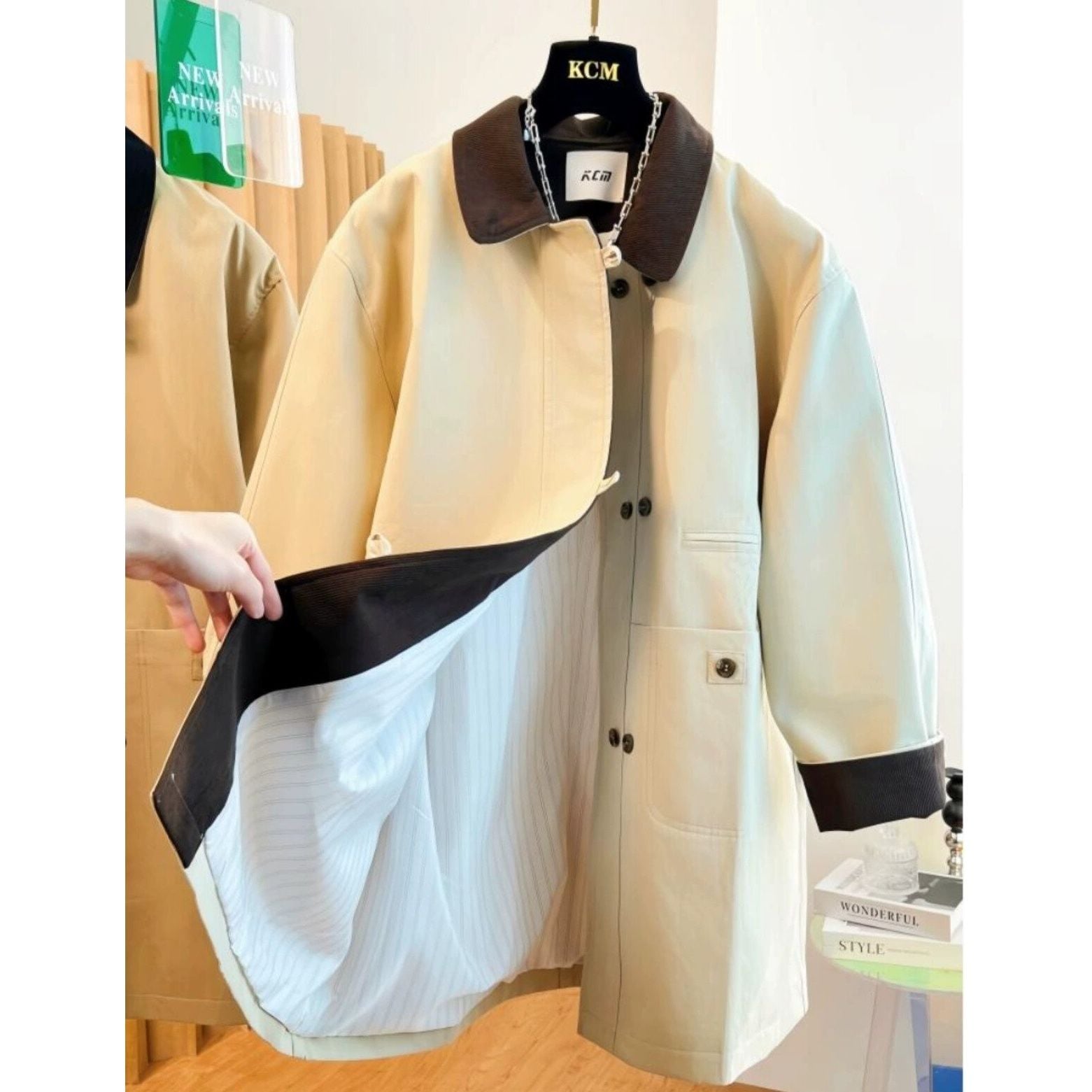 滑らかな素材に襟のコントラストがお洒落な、ポロ襟・長袖・ミドル丈のウインドブレーカーコートです。ループボタンやストライプの裏地など、クラシカルな印象のアイテムです。カーキとベージュの2色を、キルティングの裏地付きとノーマルから選べます。 SIZE:※測り方によって2-3cmの差が生じる場合がございます。 【M】バスト105cm 着丈85cm 【L】バスト110cm 着丈86cm 【XL】バスト115cm 着丈87cm 【2XL】バスト120cm 着丈88cm COLOR:Khaki、Beige 素材:ポリエステル、その他 STYLE CALENDAR:春〇 夏△ 秋◎ 冬◎ お届けについて こちらの商品は海外店舗より直接発送となる為、 ご決済から到着までは、多くの場合【10日-2週間前後】でお届けしております。 ※在庫状況や輸送の混雑により、4週間前後かかる場合がございます。 注意事項 ・商品在庫切れにより注文キャンセルとさせていただく恐れもございますので、予めご了承くださいませ。 ・仕入れ工場を変えることがあるため、記載サイズと若干異なる場合がございます。 ・商品の色味は、お手持ちのスマートフォンの画面によって実物と若干異なる場合がございます。 ・イメージ違いやサイズ交換等、お客さまご都合による交換・返品はご遠慮ください。 送料について 全国一律580円。ただし10,000円以上のご注文で送料無料となります。 お支払い方法について ・クレジットカード決済(VISA/Mastercard/JCB/アメリカン・エクスプレス/ Diners Club) ・コンビニ決済/Pay-easy ※前払いのお支払い方法 ・Pay ID あと払い(コンビニ払い、口座振替) ※あと払いのお支払い方法 ・キャリア決済(d払い/au PAY(auかんたん決済)/ソフトバンク・ワイモバイルまとめて支払い) 管理番号:M-15029