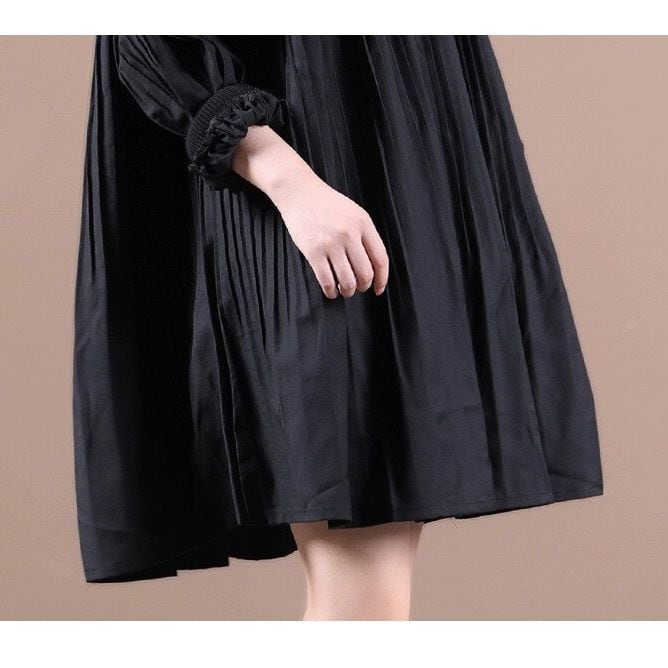 TURTLE NECK KNIT STITCH PLEATED A-LINE MINI DRESS 2colors M-15033