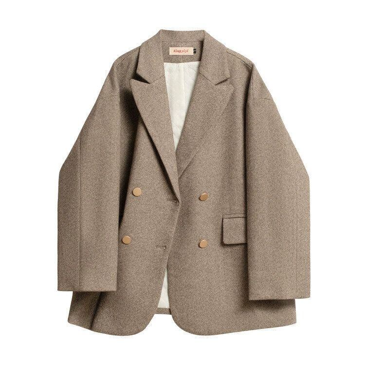 艶消し金ボタンのダブルブレストがお洒落な、ピークドラペルのブレザー型・ウールコートです。キルティングのライニングが付いて温かい、シンプルなデザインで合わせやすいアイテムです。色は3色から選べます。 SIZE:※測り方によって2-3cmの差が生じる場合がございます。 【S】バスト98cm 肩幅42cm 袖丈57cm 着丈67cm 【M】バスト102cm 肩幅43cm 袖丈58cm 着丈68cm 【L】バスト106cm 肩幅44cm 袖丈60cm 着丈69cm 【XL】バスト110cm 肩幅45cm 袖丈61cm 着丈70cm 【2XL】バスト114cm 肩幅46cm 袖丈62cm 着丈71cm 【3XL】バスト118cm 肩幅47cm 袖丈63cm 着丈72cm COLOR:GrayBrown 素材:ポリエステル、その他 STYLE CALENDAR:春〇 夏△ 秋◎ 冬◎ お届けについて こちらの商品は海外店舗より直接発送となる為、 ご決済から到着までは、多くの場合【10日-2週間前後】でお届けしております。 ※在庫状況や輸送の混雑により、4週間前後かかる場合がございます。 注意事項 ・商品在庫切れにより注文キャンセルとさせていただく恐れもございますので、予めご了承くださいませ。 ・仕入れ工場を変えることがあるため、記載サイズと若干異なる場合がございます。 ・商品の色味は、お手持ちのスマートフォンの画面によって実物と若干異なる場合がございます。 ・イメージ違いやサイズ交換等、お客さまご都合による交換・返品はご遠慮ください。 送料について 全国一律580円。ただし10,000円以上のご注文で送料無料となります。 お支払い方法について ・クレジットカード決済(VISA/Mastercard/JCB/アメリカン・エクスプレス/ Diners Club) ・コンビニ決済/Pay-easy ※前払いのお支払い方法 ・Pay ID あと払い(コンビニ払い、口座振替) ※あと払いのお支払い方法 ・キャリア決済(d払い/au PAY(auかんたん決済)/ソフトバンク・ワイモバイルまとめて支払い) 管理番号:M-15040