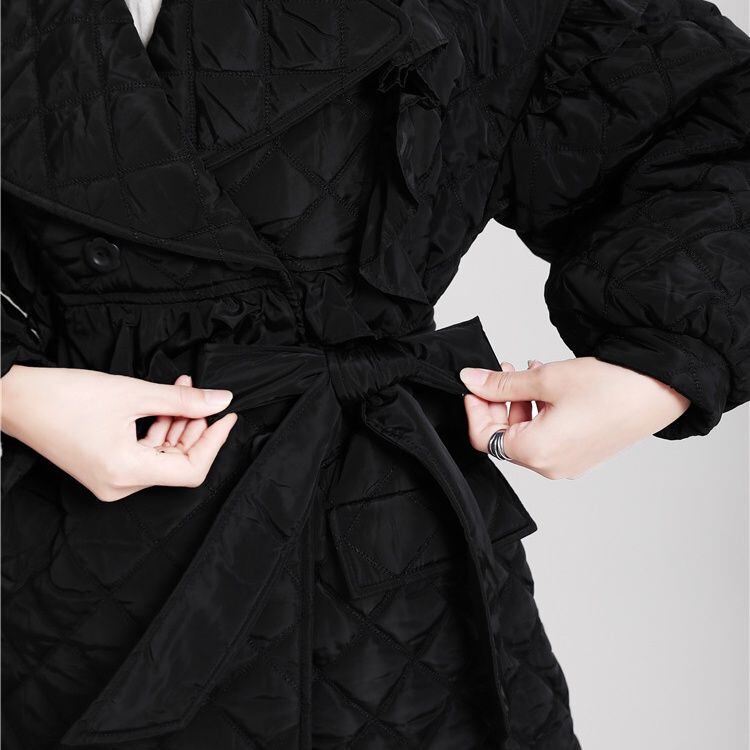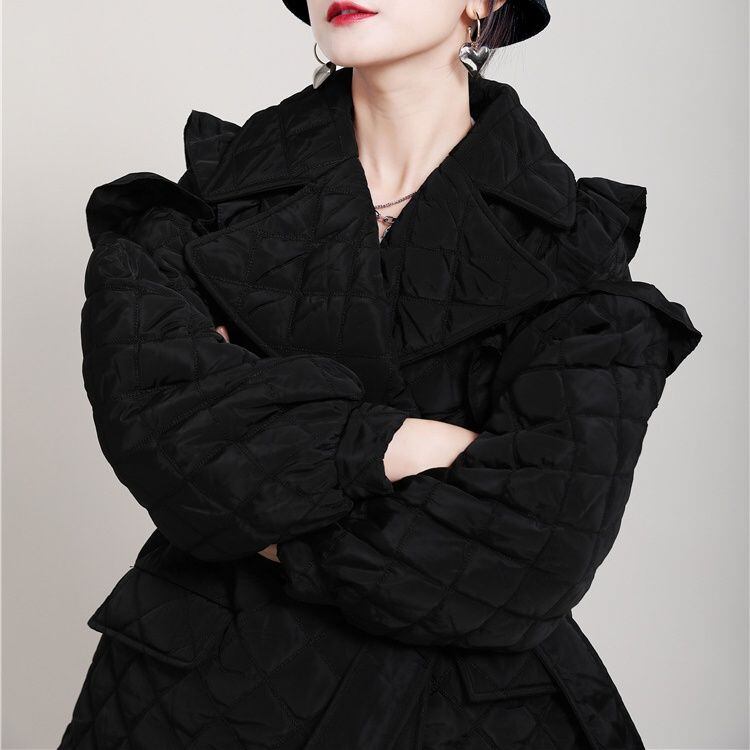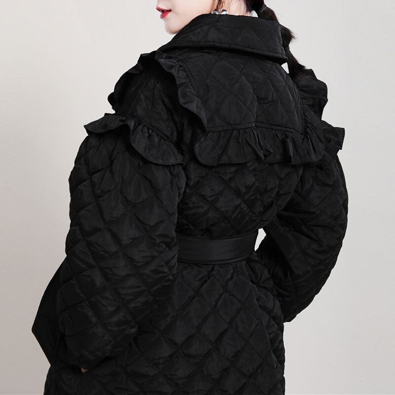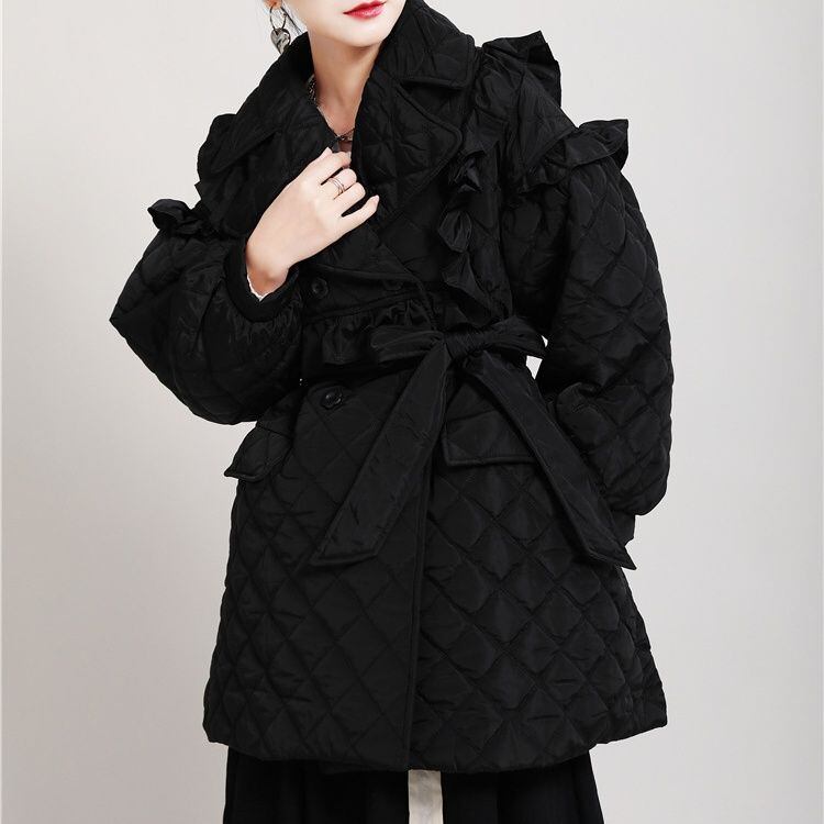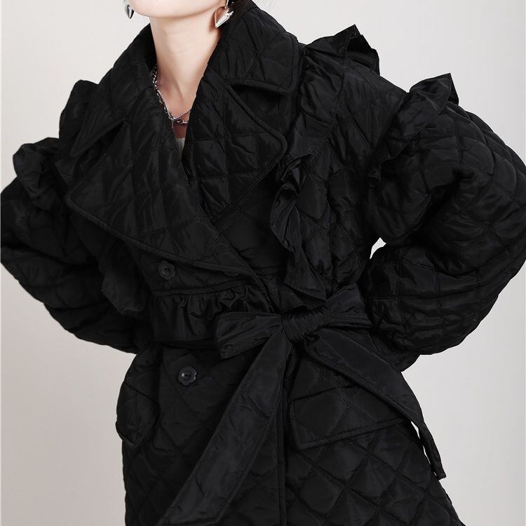 FRILL TRIMMED DOUBLE BREAST MIDI PADDED COAT 1color M-15046