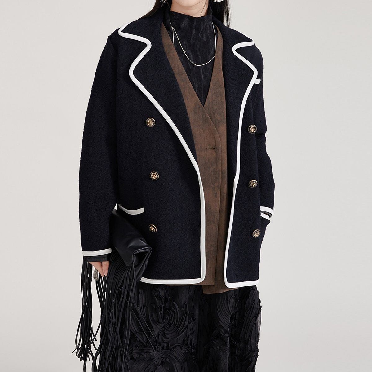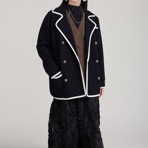 CONTRAST PIPING DOUBLE BREAST SHORT COAT 1color M-15047