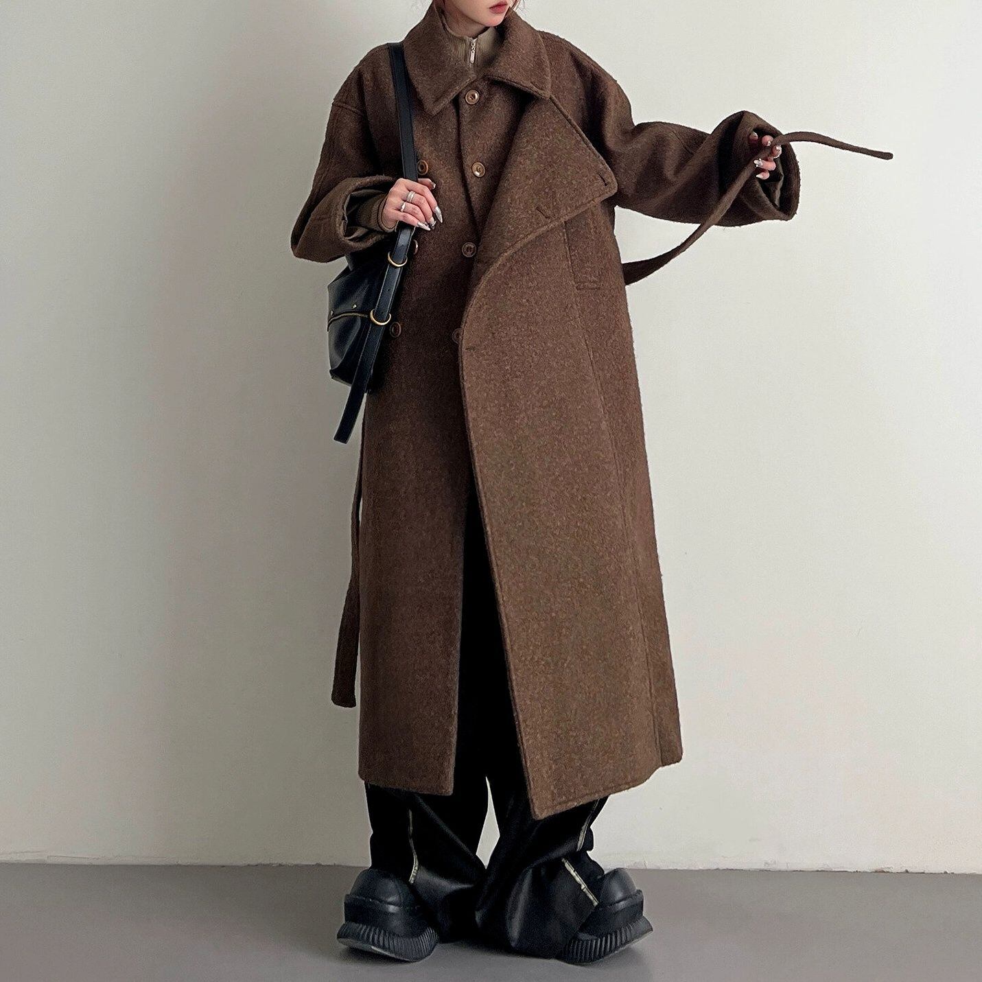 BROWN LONG DESIGN WOOL COAT 1color M-15048