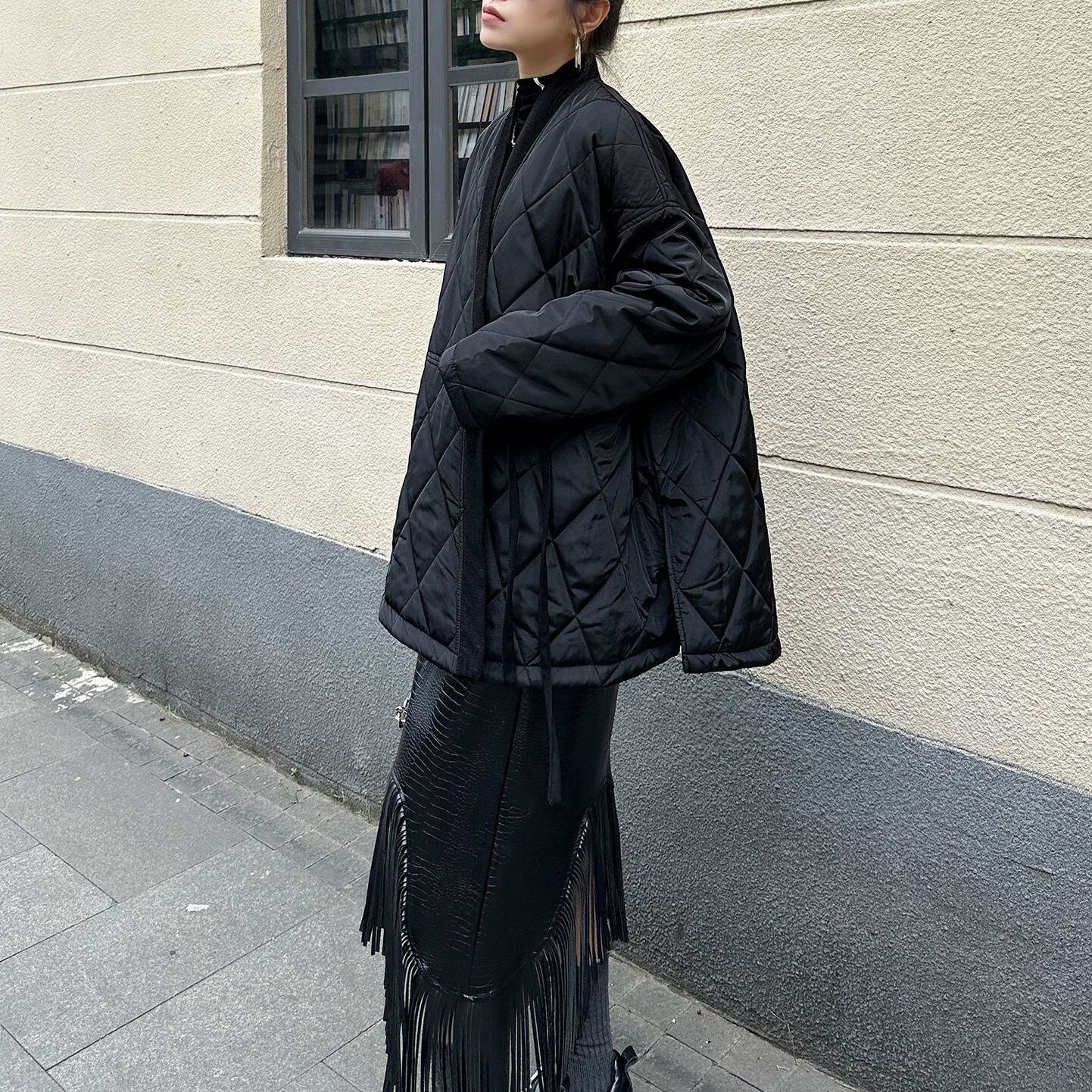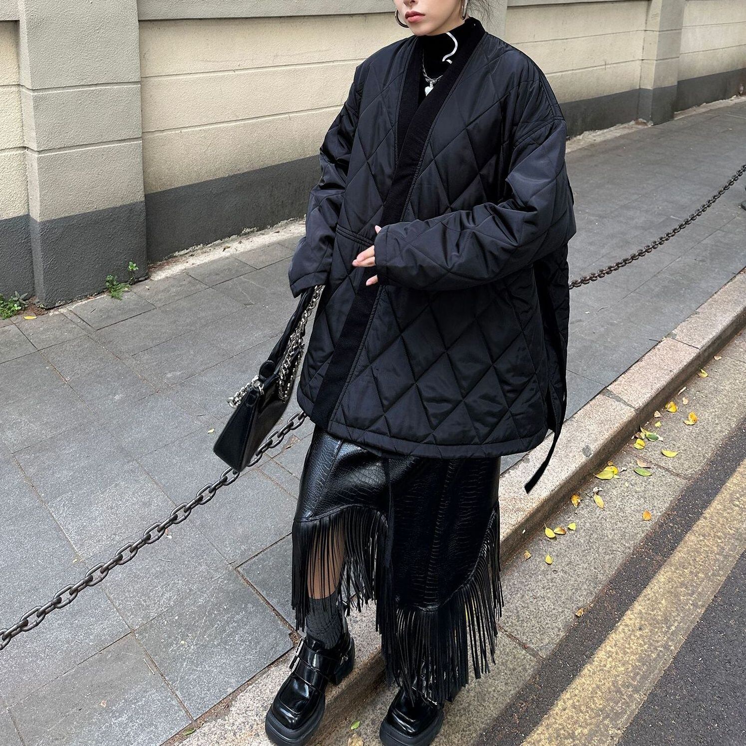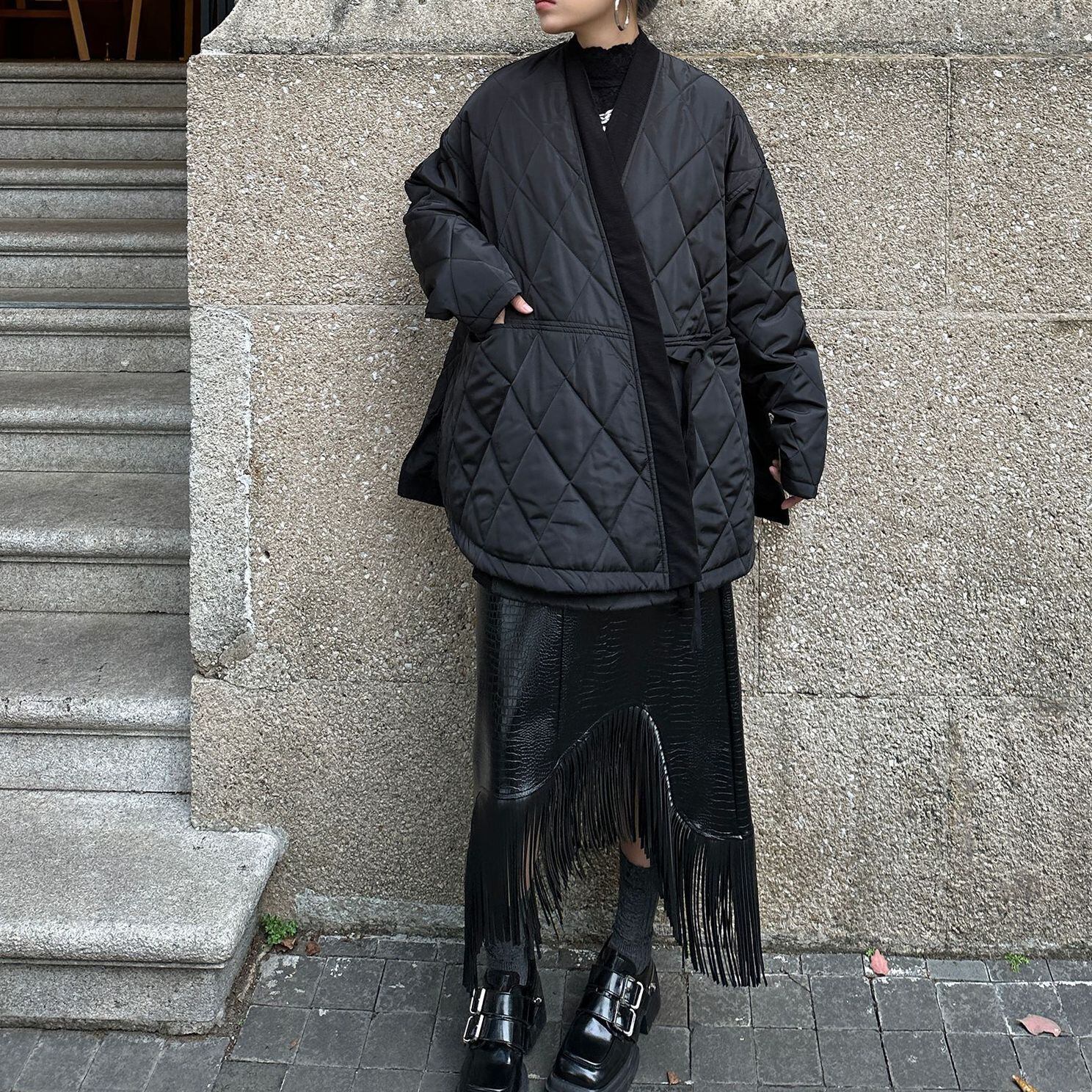 BLACK V-NECK QUILTING CARDIGAN COAT 1color M-15049