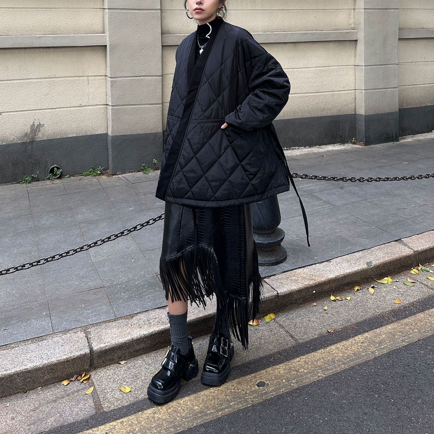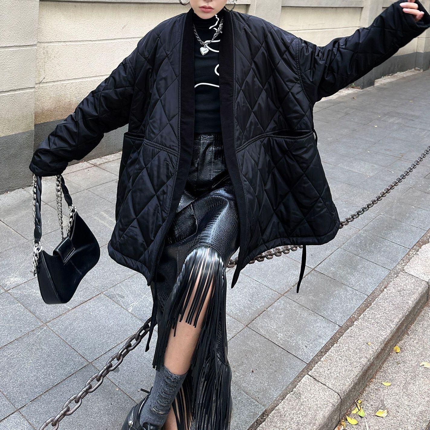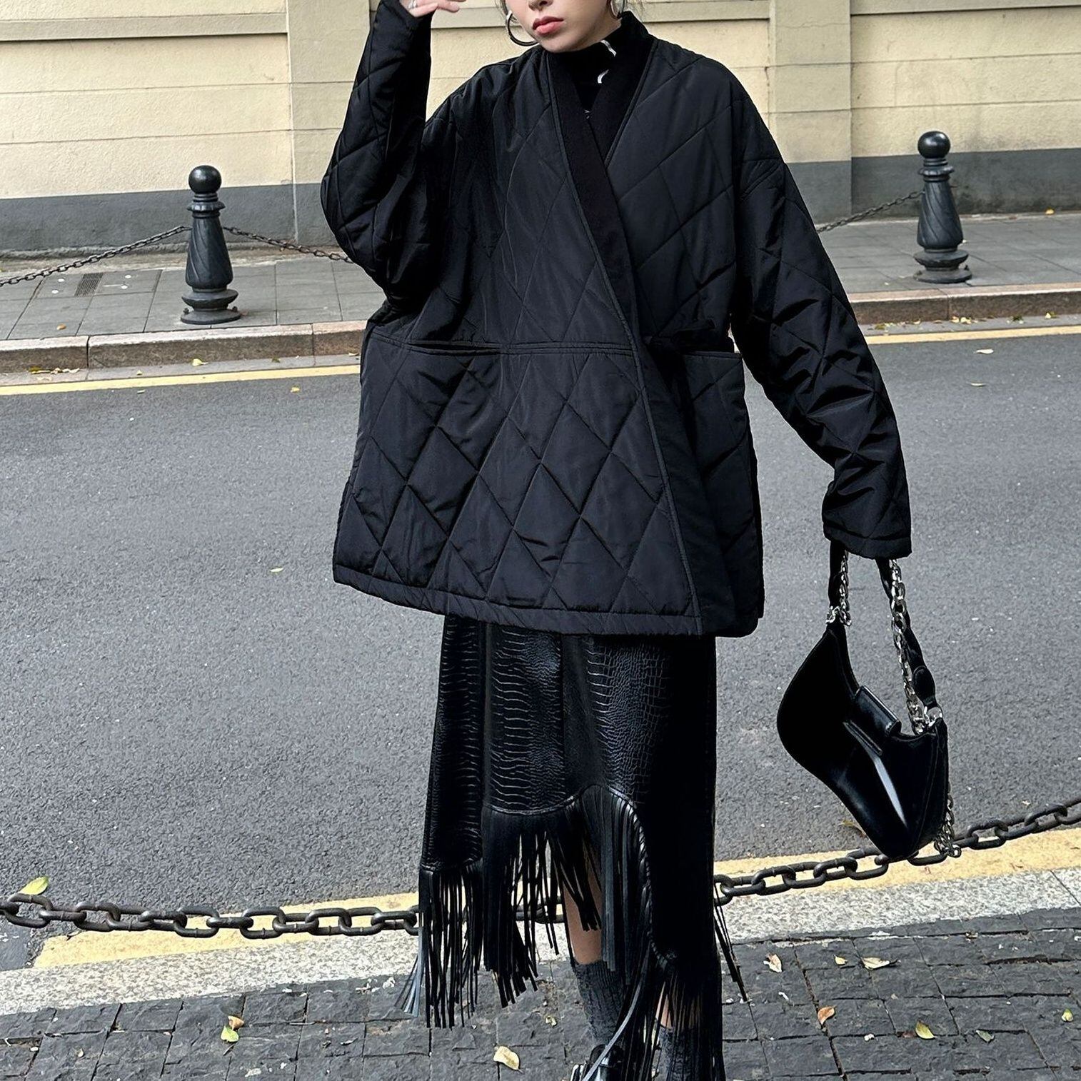 BLACK V-NECK QUILTING CARDIGAN COAT 1color M-15049