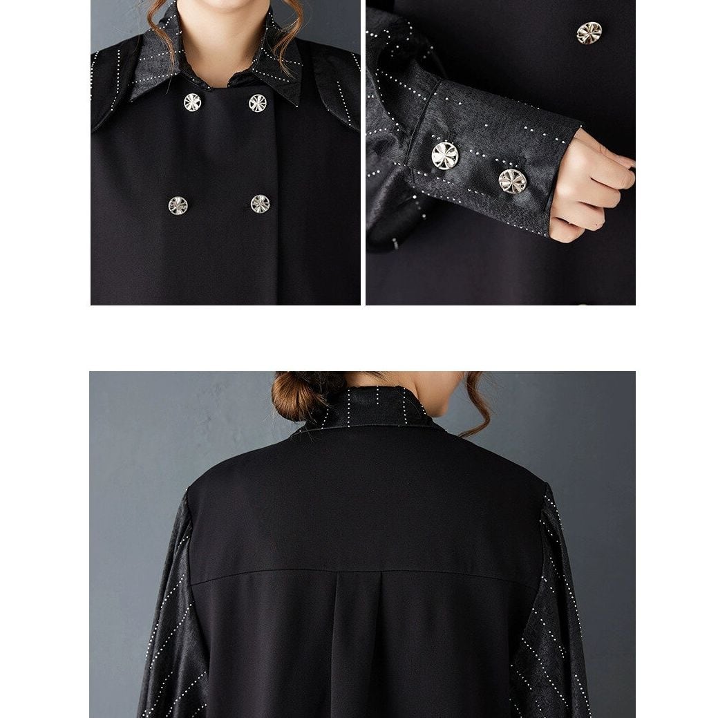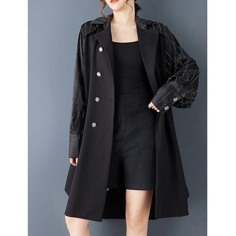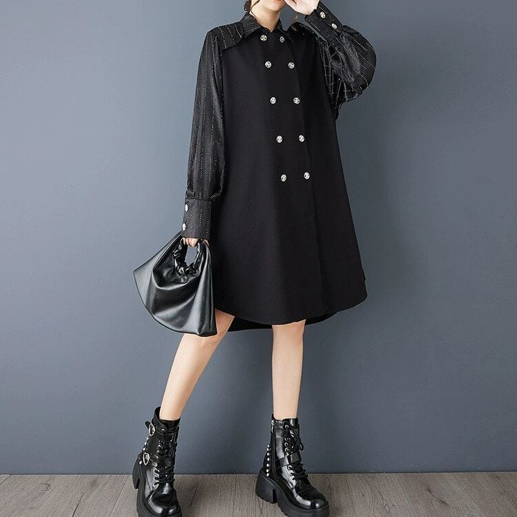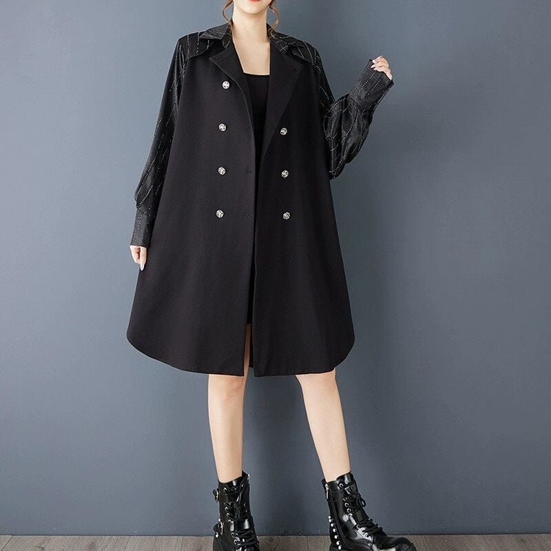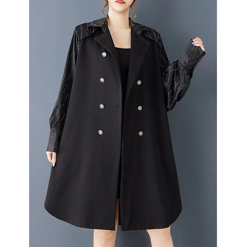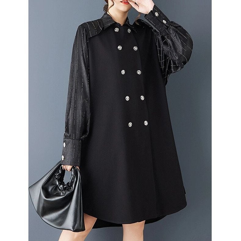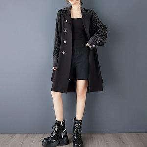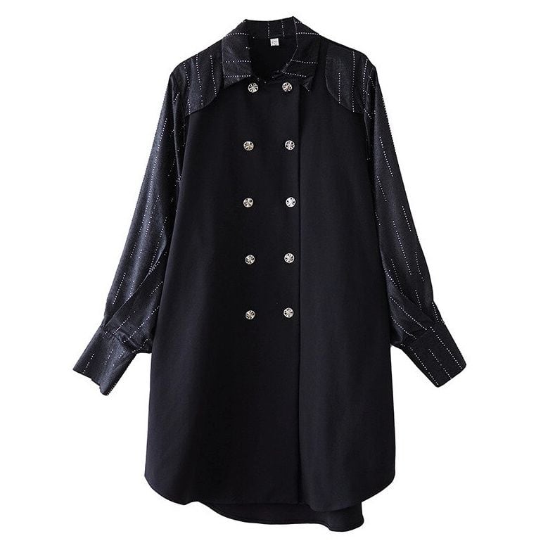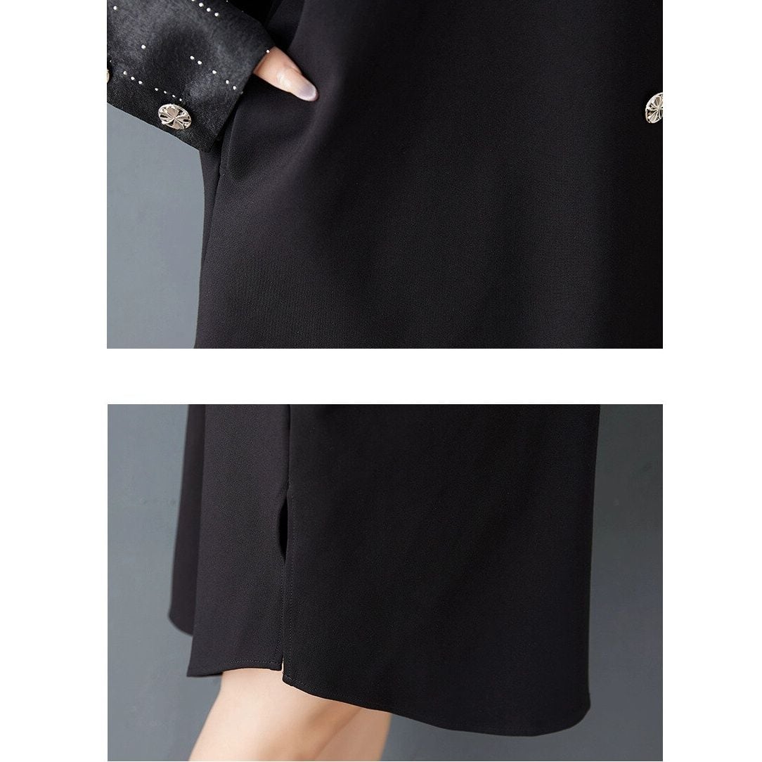 BLACK STITCH DESIGN DOUBLE BREAST MINI DRESS JACKET 1color M-15054
