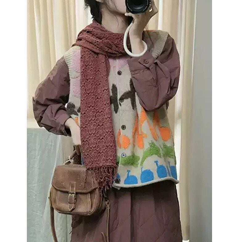 MULTI COLOR PRINT KNIT VEST CARDIGAN 1color M-15057