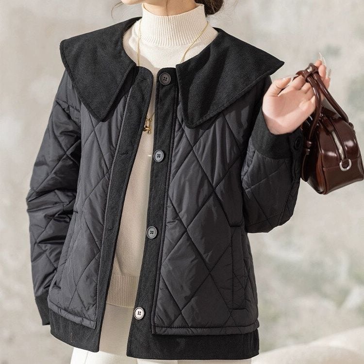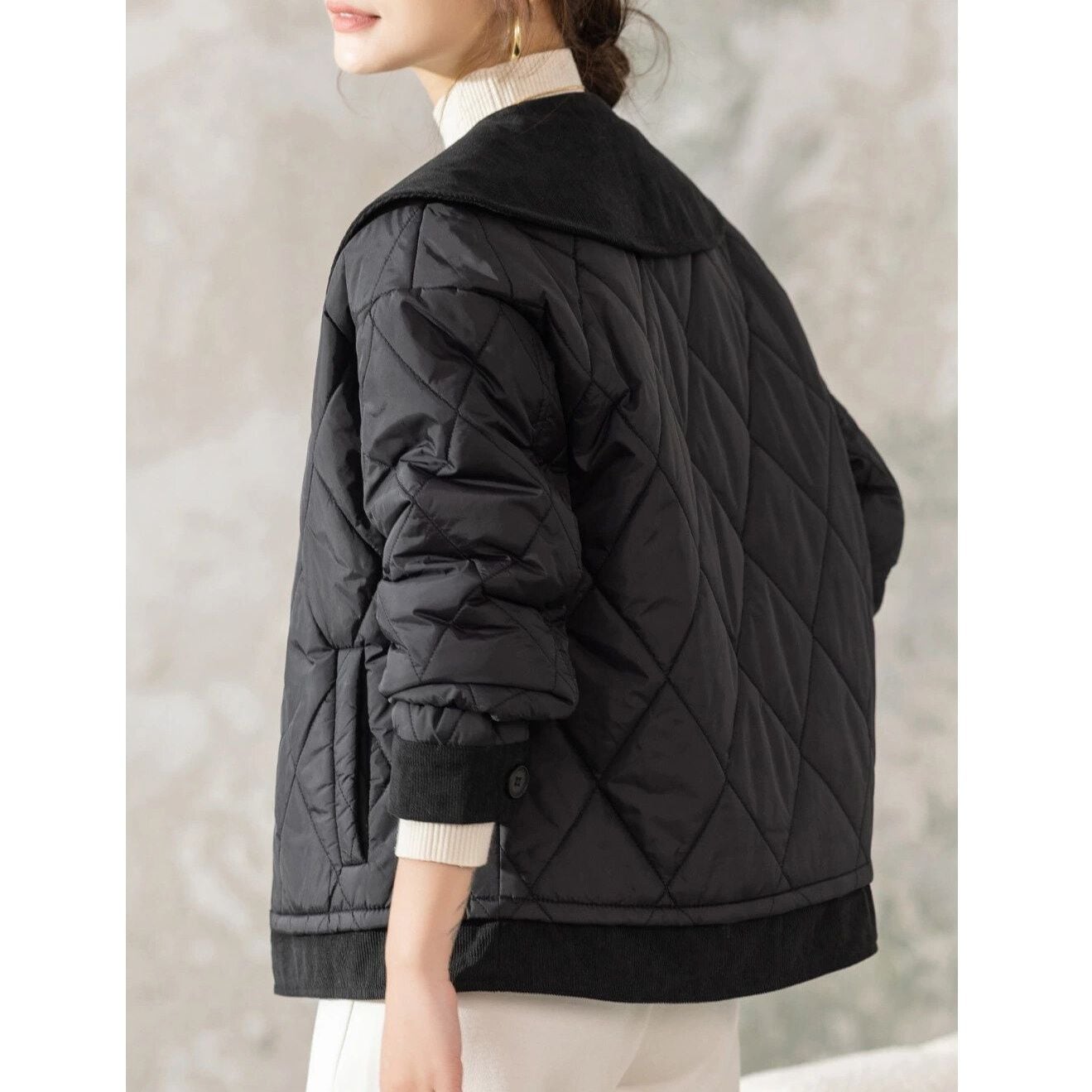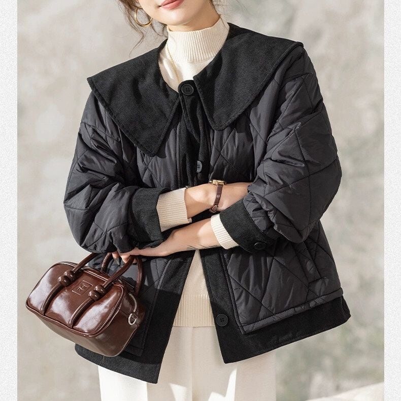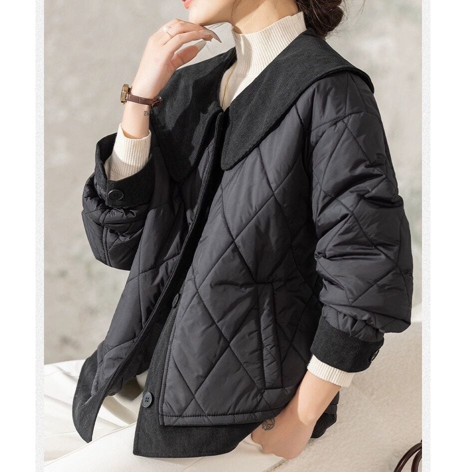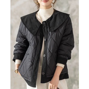 大きめのドールカラーにショート丈のシルエットが上品な、キルティングジャケットです。襟・袖口・ボタンライン・裾がコーデュロイでできた、素材のコントラストがお洒落なオールブラックのアイテムです。 SIZE:※測り方によって2-3cmの差が生じる場合がございます。 【S】バスト106cm 肩幅53cm 袖丈48cm 袖口26cm ウエスト106cm 着丈62cm 【M】バスト110cm 肩幅54cm 袖丈49cm 袖口27cm ウエスト110cm 着丈63cm 【L】バスト114cm 肩幅55cm 袖丈50cm 袖口28cm ウエスト114cm 着丈64cm 【XL】バスト118cm 肩幅56cm 袖丈51cm 袖口29cm ウエスト118cm 着丈65cm 【2XL】バスト122cm 肩幅57cm 袖丈52cm 袖口30cm ウエスト122cm 着丈66cm 【3XL】バスト126cm 肩幅58cm 袖丈53cm 袖口31cm ウエスト126cm 着丈67cm 【4XL】バスト130cm 肩幅59cm 袖丈54cm 袖口32cm ウエスト130cm 着丈68cm COLOR:Black 素材:ポリエステル、その他 モデル着用サイズ:L モデル情報:身長161cm 体重49kg STYLE CALENDAR:春〇 夏△ 秋◎ 冬◎ お届けについて こちらの商品は海外店舗より直接発送となる為、 ご決済から到着までは、多くの場合【10日-2週間前後】でお届けしております。 ※在庫状況や輸送の混雑により、4週間前後かかる場合がございます。 注意事項 ・商品在庫切れにより注文キャンセルとさせていただく恐れもございますので、予めご了承くださいませ。 ・仕入れ工場を変えることがあるため、記載サイズと若干異なる場合がございます。 ・商品の色味は、お手持ちのスマートフォンの画面によって実物と若干異なる場合がございます。 ・イメージ違いやサイズ交換等、お客さまご都合による交換・返品はご遠慮ください。 送料について 全国一律580円。ただし10,000円以上のご注文で送料無料となります。 お支払い方法について ・クレジットカード決済(VISA/Mastercard/JCB/アメリカン・エクスプレス/ Diners Club) ・コンビニ決済/Pay-easy ※前払いのお支払い方法 ・Pay ID あと払い(コンビニ払い、口座振替) ※あと払いのお支払い方法 ・キャリア決済(d払い/au PAY(auかんたん決済)/ソフトバンク・ワイモバイルまとめて支払い) 管理番号:M-15058
