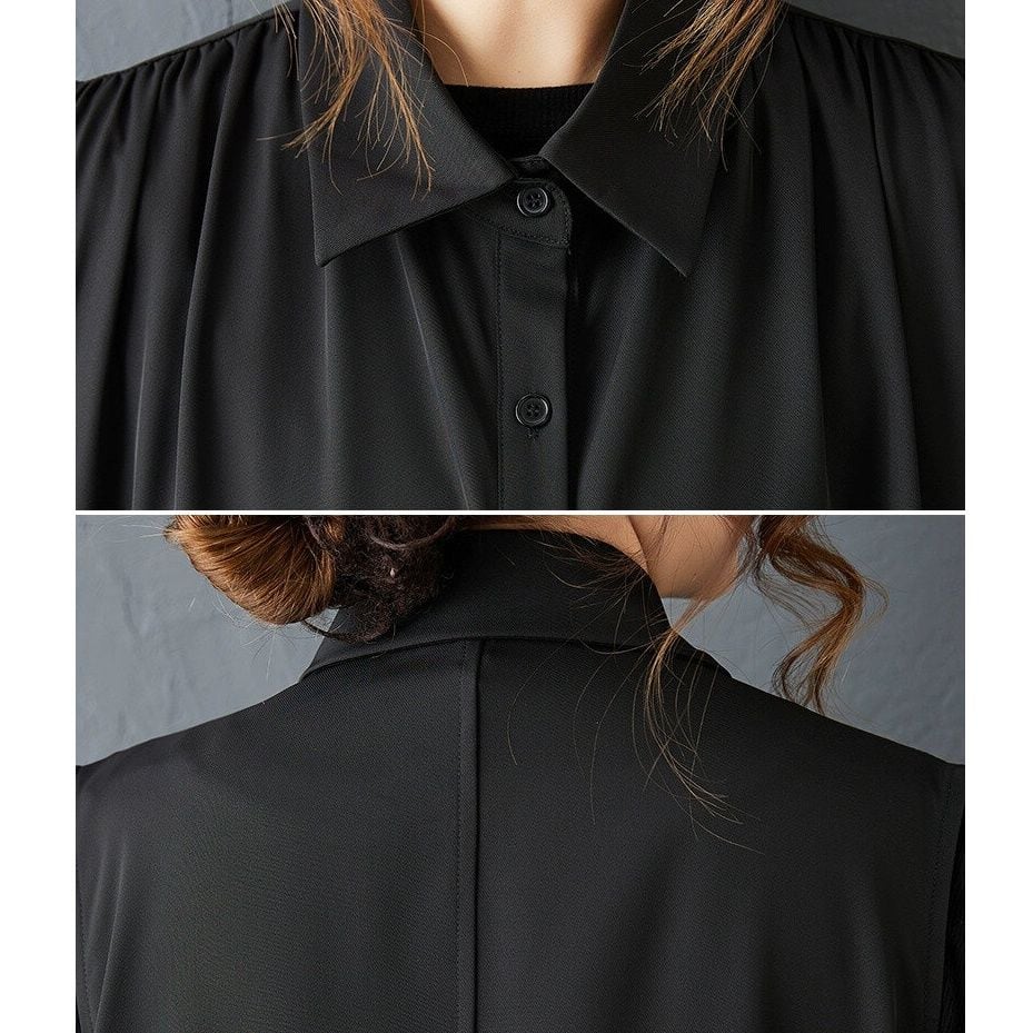 BLACK SLEEVELESS A-LINE MIDI SHIRT DRESS 1color M-15060