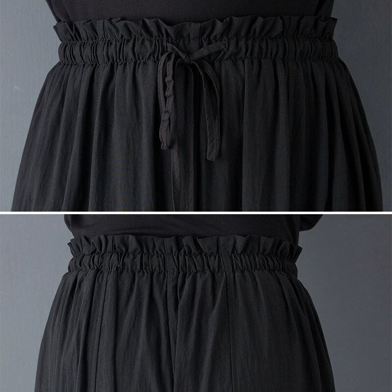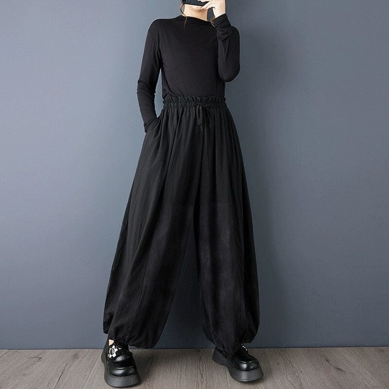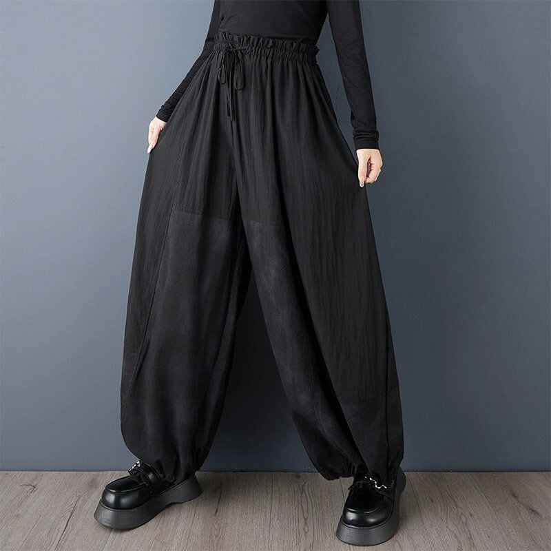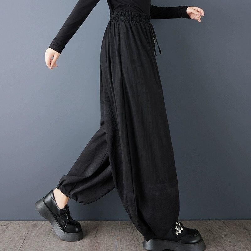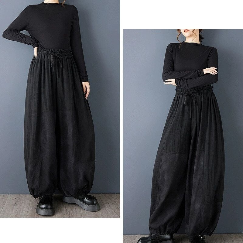BLACK DRAWSTRING WAIST HAREM PANTS 1color M-15061
