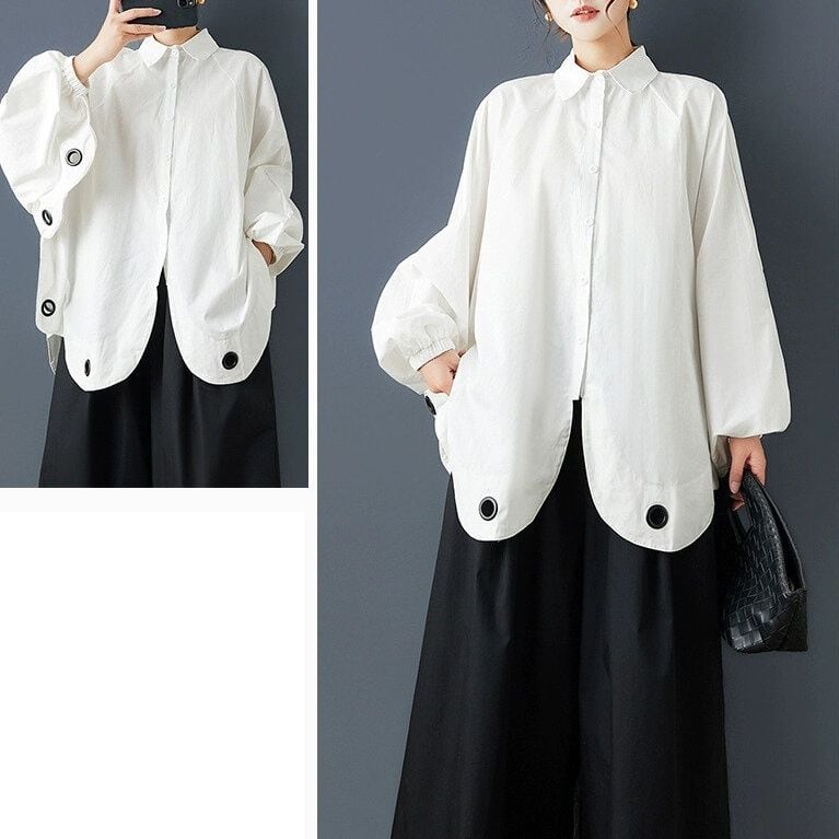 SOLID IRREGULAR DESIGN HEM LONG SLEEVES SHIRT 3color M-15065