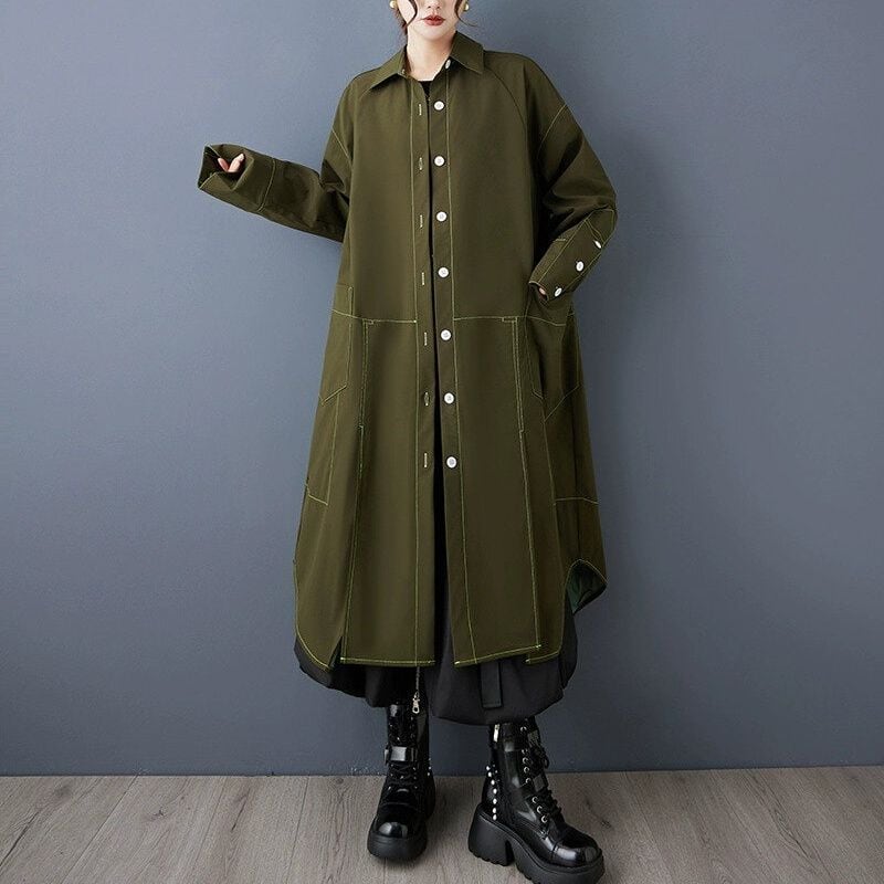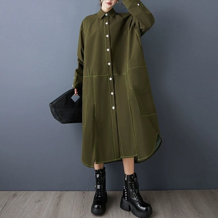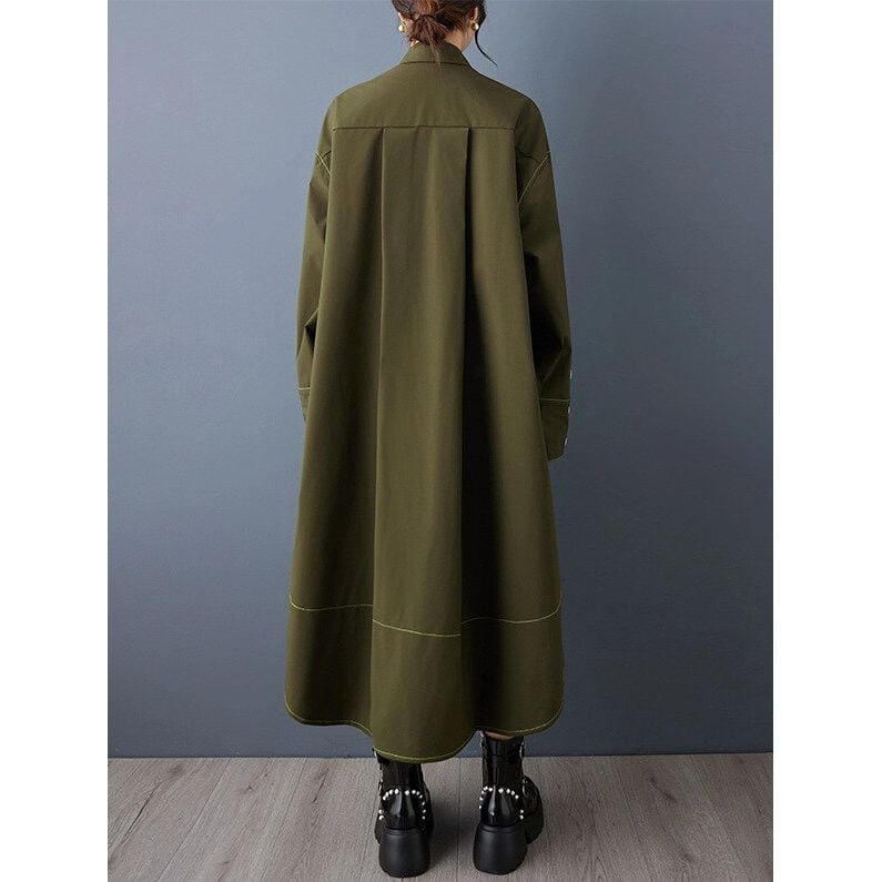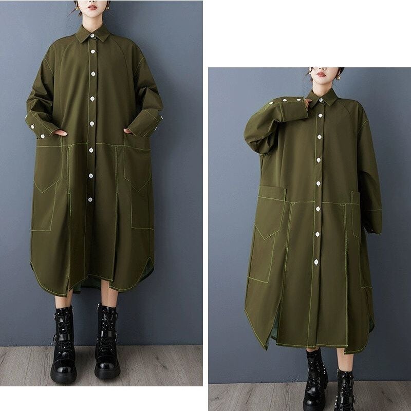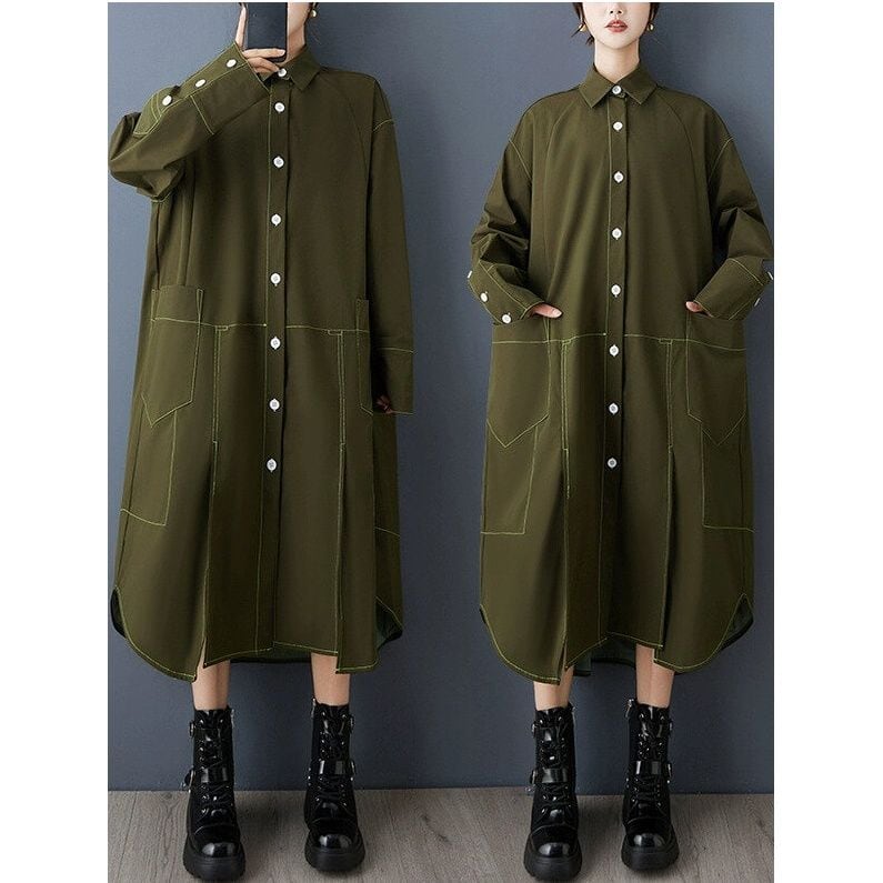 ARMYGREEN STITCH LINED LONG SHIRT DRESS JACKET 1color M-15067
