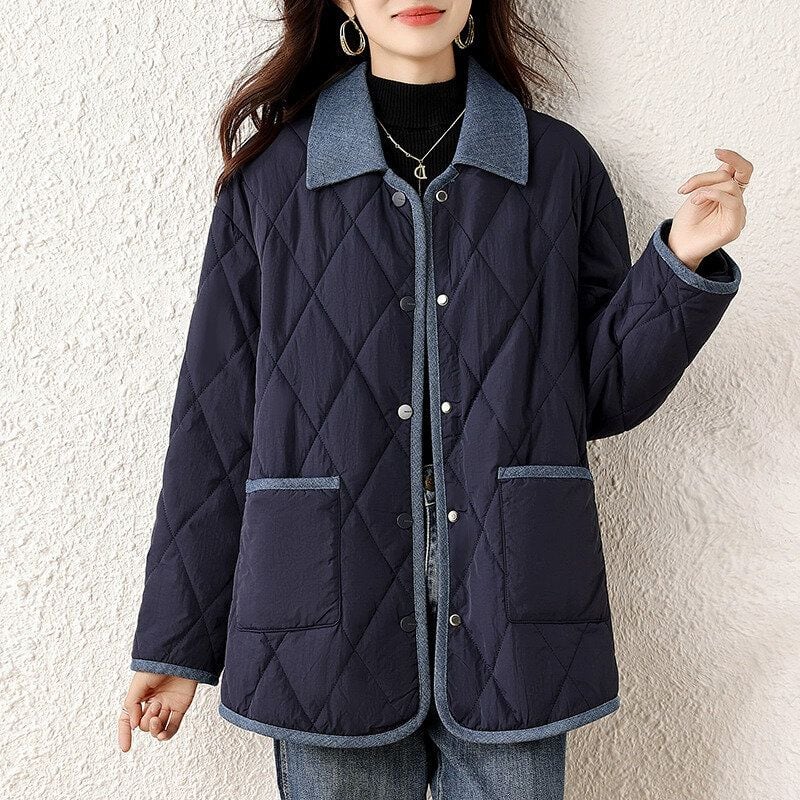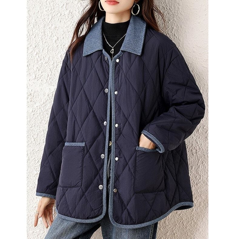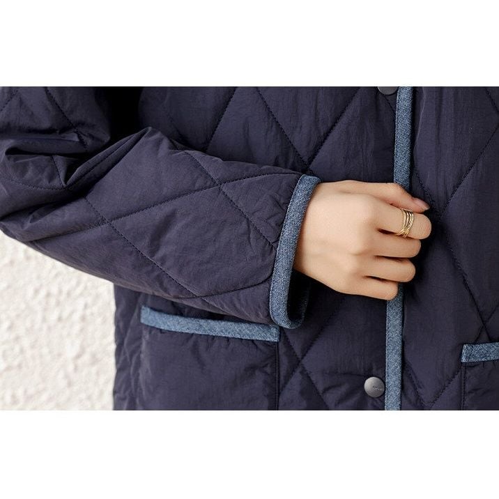 ネイビーにブルーの縁取りがお洒落な、ポロ襟・長袖・中綿ジャケットです。ゆったりとしたシルエットにスナップボタンで使いやすい、上品な印象のカジュアルアイテムです。 SIZE:※測り方によって2-3cmの差が生じる場合がございます。 【M】バスト116cm 肩幅51cm 袖丈51cm 着丈72cm 【L】バスト120cm 肩幅52cm 袖丈51.5cm 着丈73cm 【XL】バスト124cm 肩幅53cm 袖丈52cm 着丈74cm 【2XL】バスト128cm 肩幅54cm 袖丈52.5cm 着丈75cm 【3XL】バスト132cm 肩幅55cm 袖丈53cm 着丈76cm 【4XL】バスト136cm 肩幅56cm 袖丈53.5cm 着丈77cm COLOR:Navy 素材:ポリエステル、その他 モデル着用サイズ:L モデル情報:身長161cm 体重49kg STYLE CALENDAR:春〇 夏△ 秋〇 冬◎ お届けについて こちらの商品は海外店舗より直接発送となる為、 ご決済から到着までは、多くの場合【10日-2週間前後】でお届けしております。 ※在庫状況や輸送の混雑により、4週間前後かかる場合がございます。 注意事項 ・商品在庫切れにより注文キャンセルとさせていただく恐れもございますので、予めご了承くださいませ。 ・仕入れ工場を変えることがあるため、記載サイズと若干異なる場合がございます。 ・商品の色味は、お手持ちのスマートフォンの画面によって実物と若干異なる場合がございます。 ・イメージ違いやサイズ交換等、お客さまご都合による交換・返品はご遠慮ください。 送料について 全国一律580円。ただし10,000円以上のご注文で送料無料となります。 お支払い方法について ・クレジットカード決済(VISA/Mastercard/JCB/アメリカン・エクスプレス/ Diners Club) ・コンビニ決済/Pay-easy ※前払いのお支払い方法 ・Pay ID あと払い(コンビニ払い、口座振替) ※あと払いのお支払い方法 ・キャリア決済(d払い/au PAY(auかんたん決済)/ソフトバンク・ワイモバイルまとめて支払い) 管理番号:M-15074