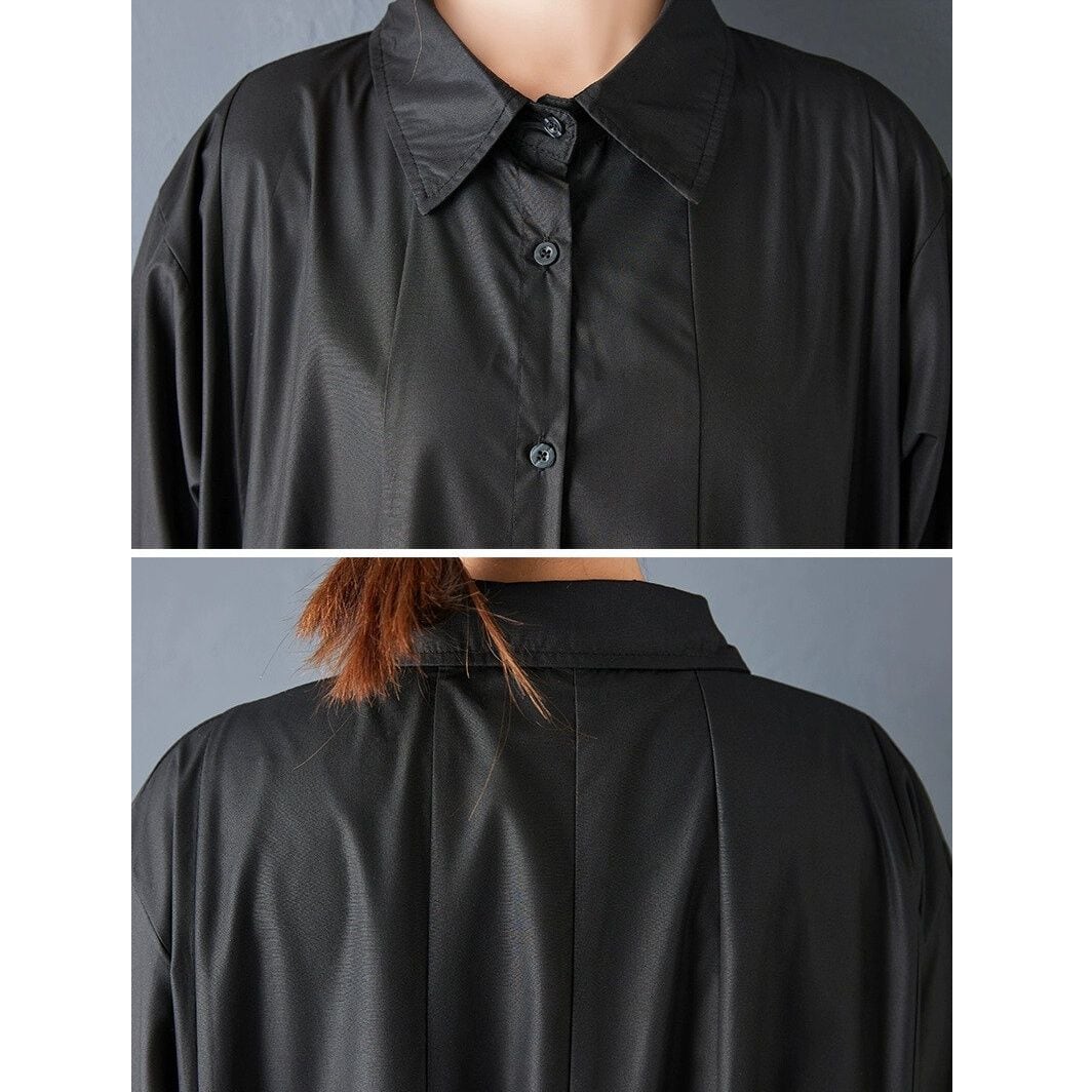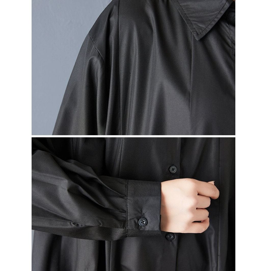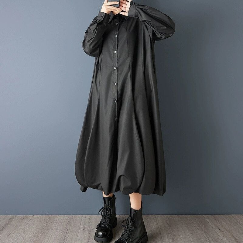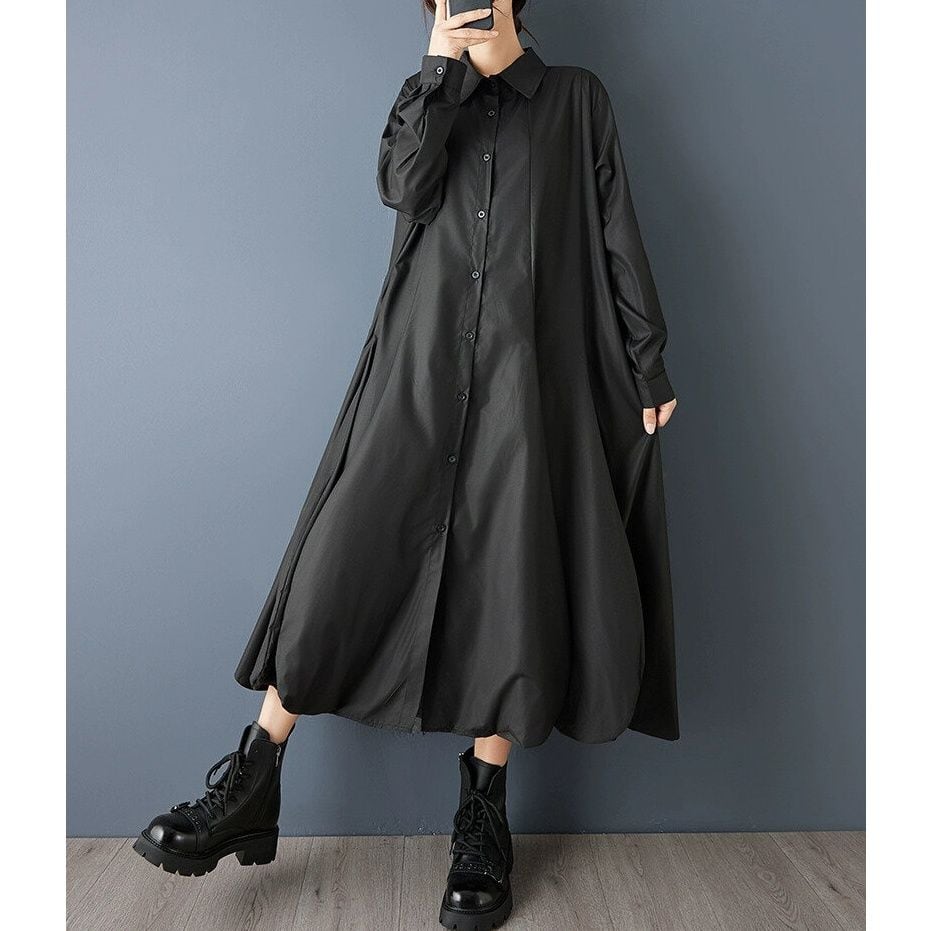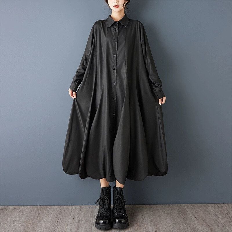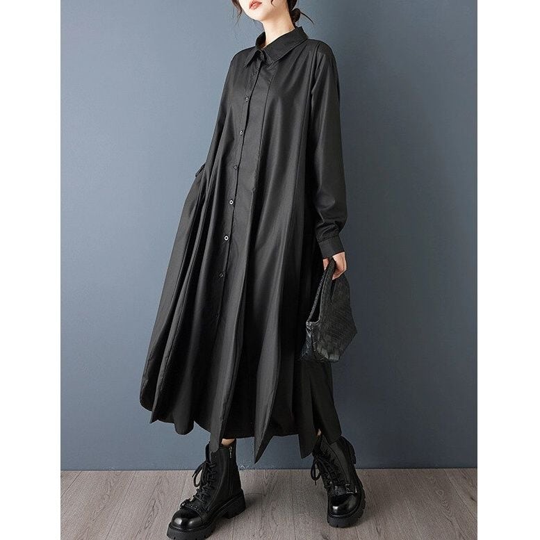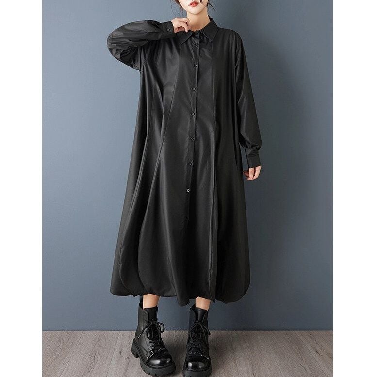 BLACK PETAL FLAP HEM LONG SHIRT DRESS 1color M-15090