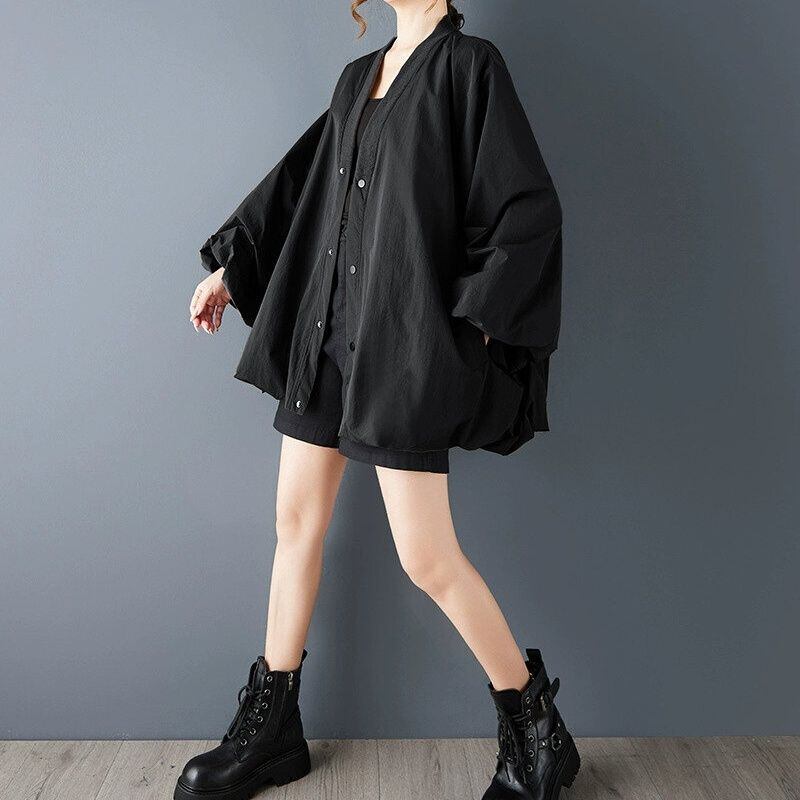 BLACK V-NECK BALLOON CARDIGAN JACKET 1color M-15094