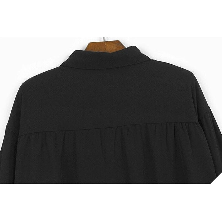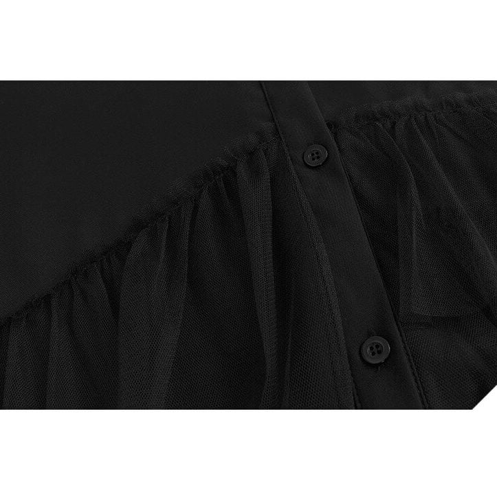 SOLID MESH FRILLED LONG SLEEVES SHIRT 3colors M-15110