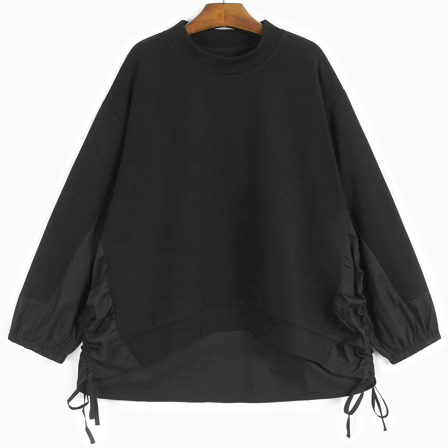 SIDE DRAWSTRING SHIRT STITCH MOCK NECK PULLOVER TOP 2colors M-15112