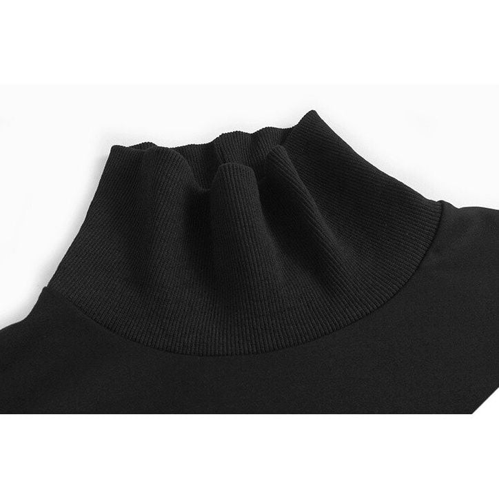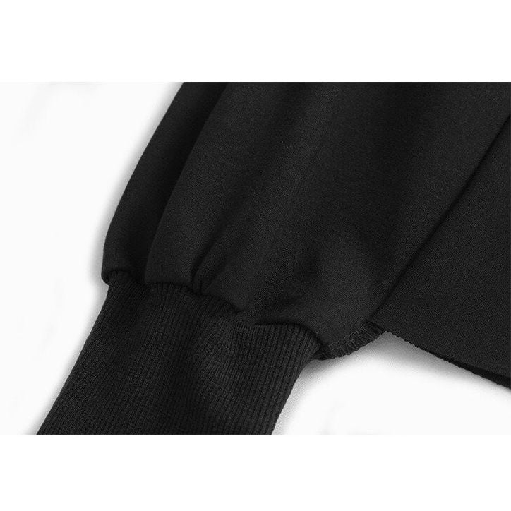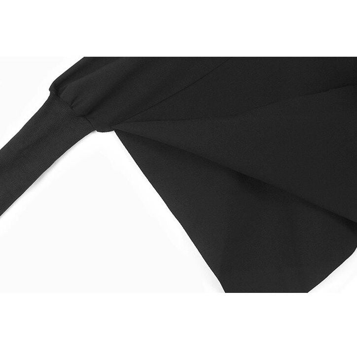 BLACK HIGH NECK BAT SLEEVES IRREGULAR HEM DESIGN TOP 1color M-15113