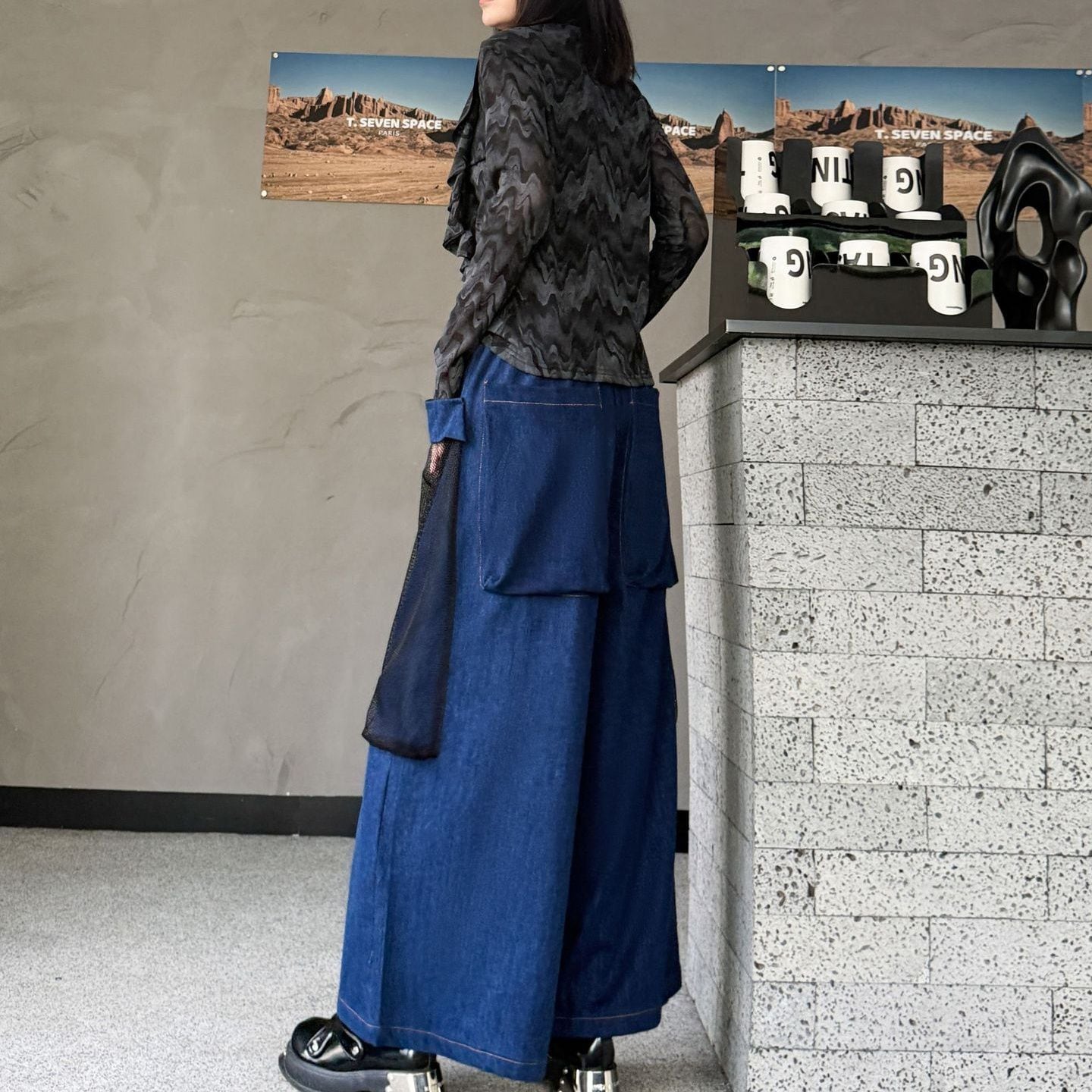 MESH BIG POCKET WIDE LEG DENIM PANTS 2colors M-15121