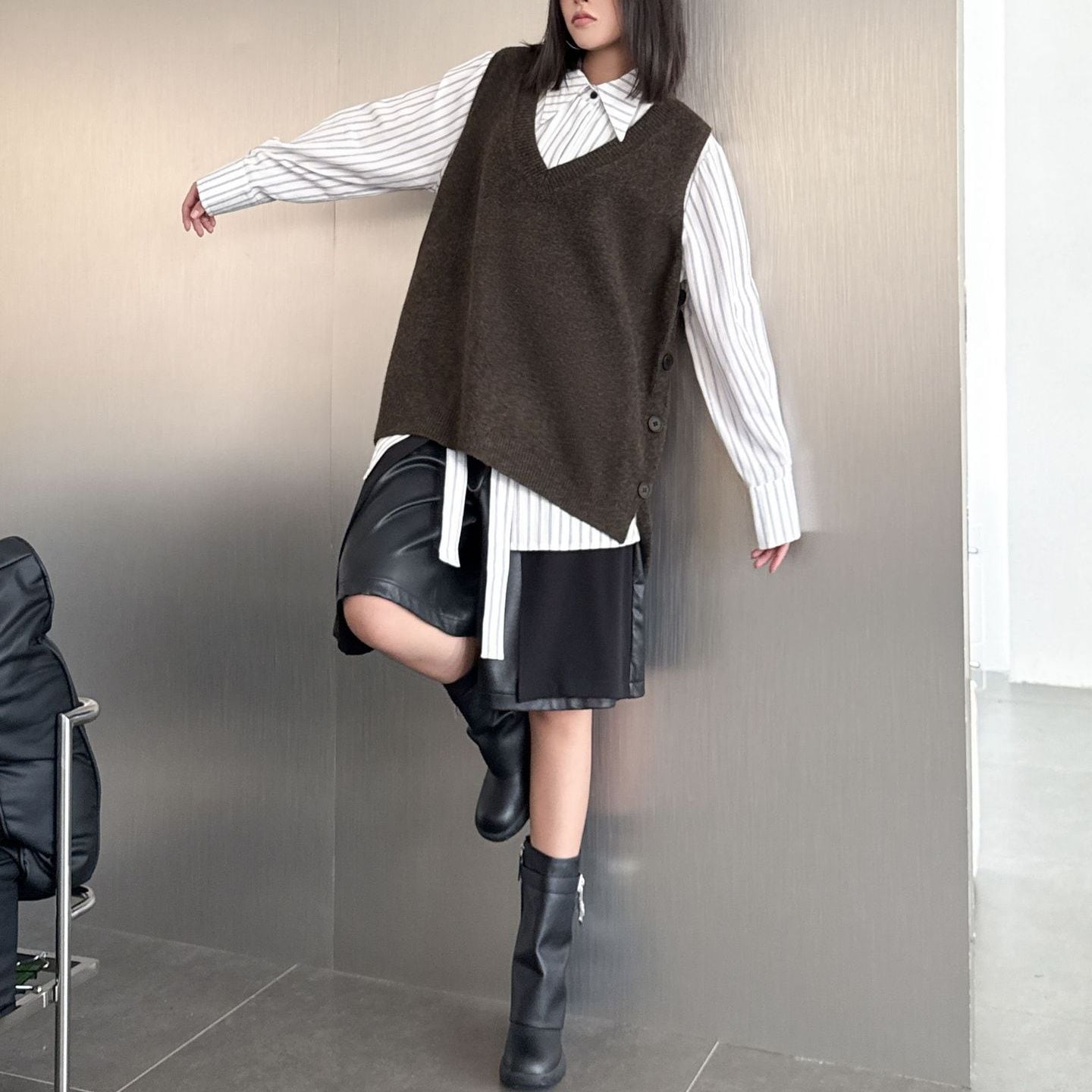 SOLID V-NECK HIGH-LOW HEM DESIGN KNIT VEST 2colors M-15122