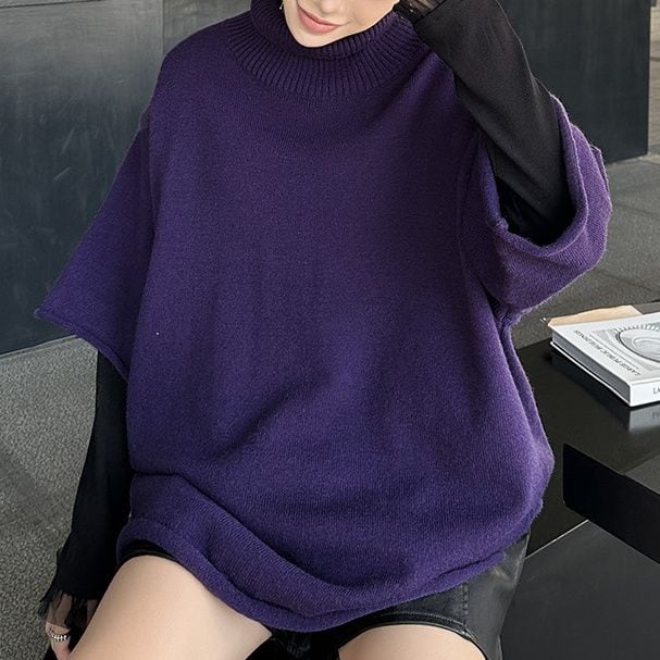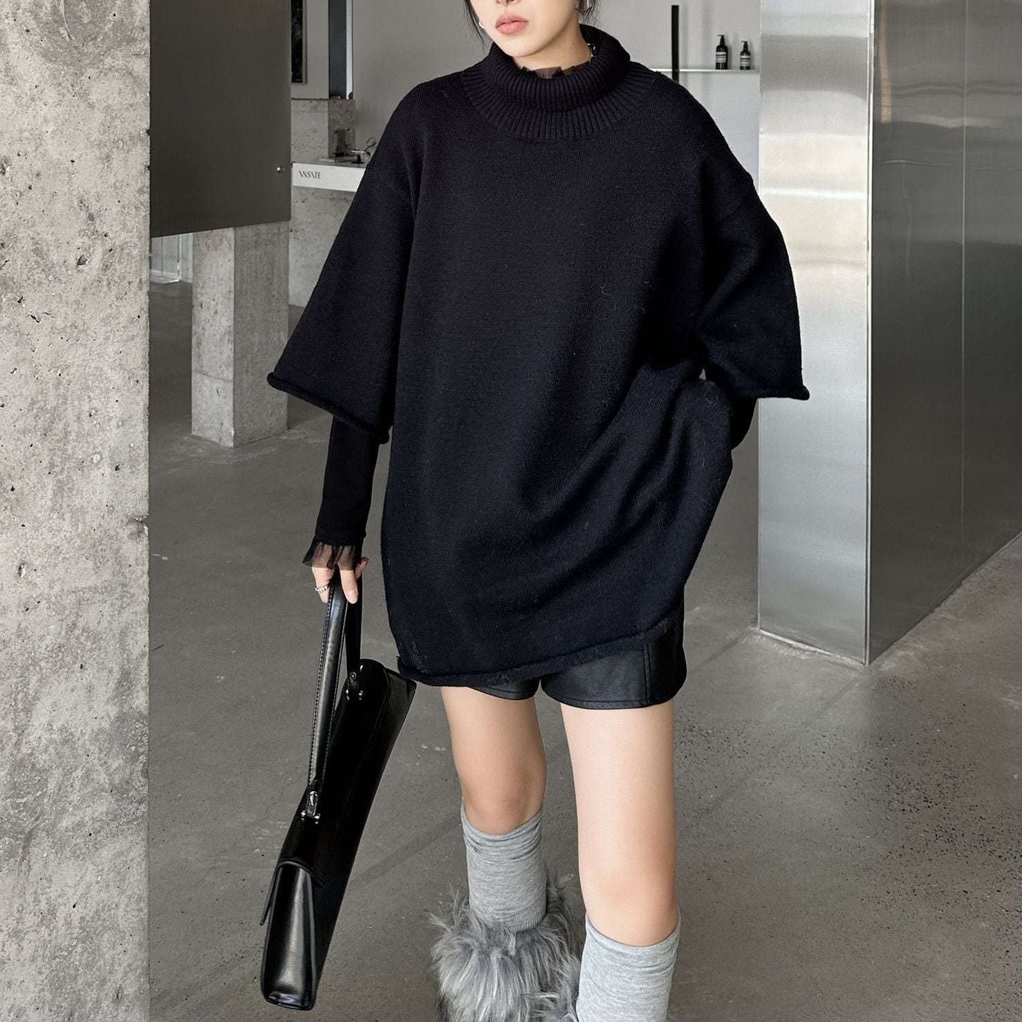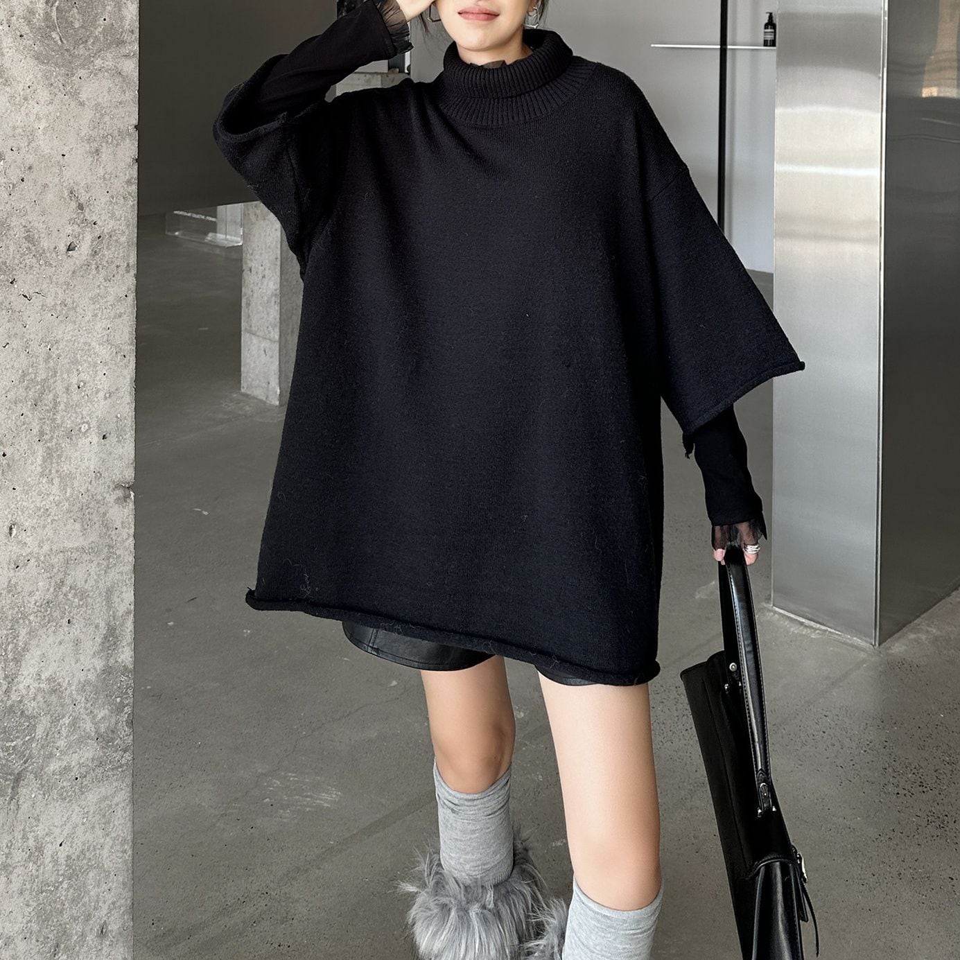SOLID TURTLE NECK 3/4 SLEEVES PULLOVER KNIT TUNIC 3colors M-15135