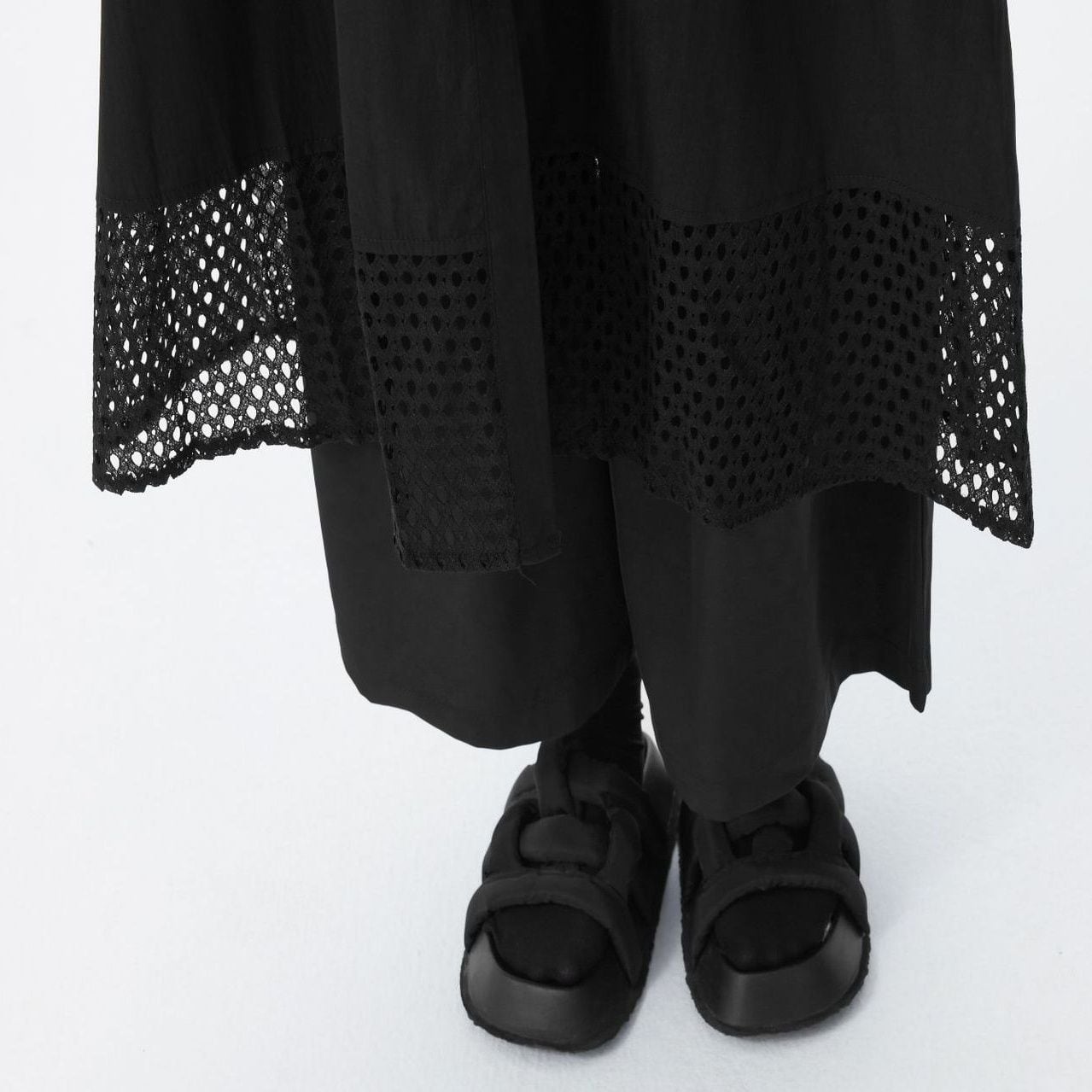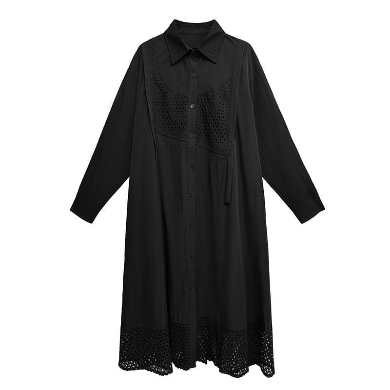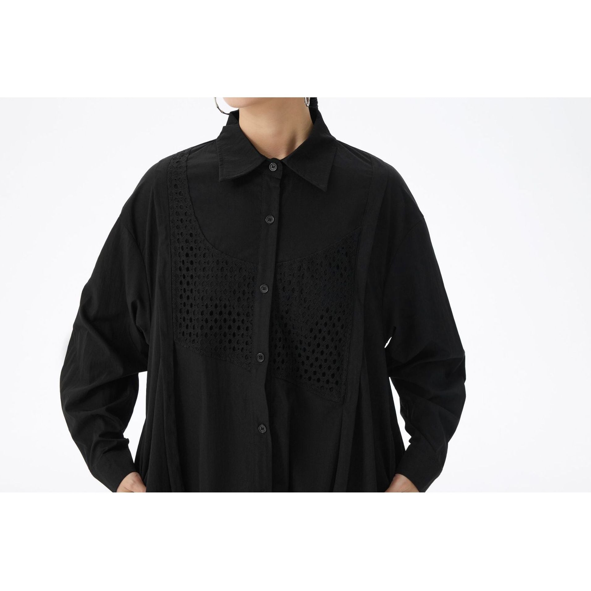 BLACK MESH STITCHED A-LINE MIDI SHIRT DRESS 1color M-15140