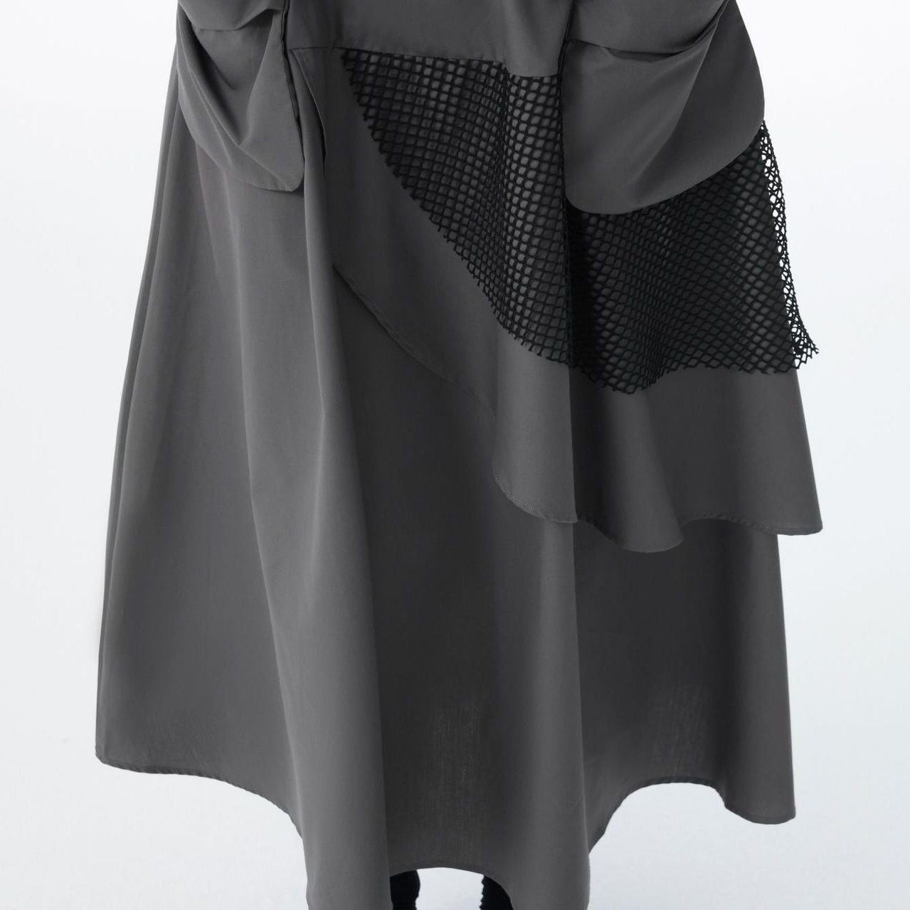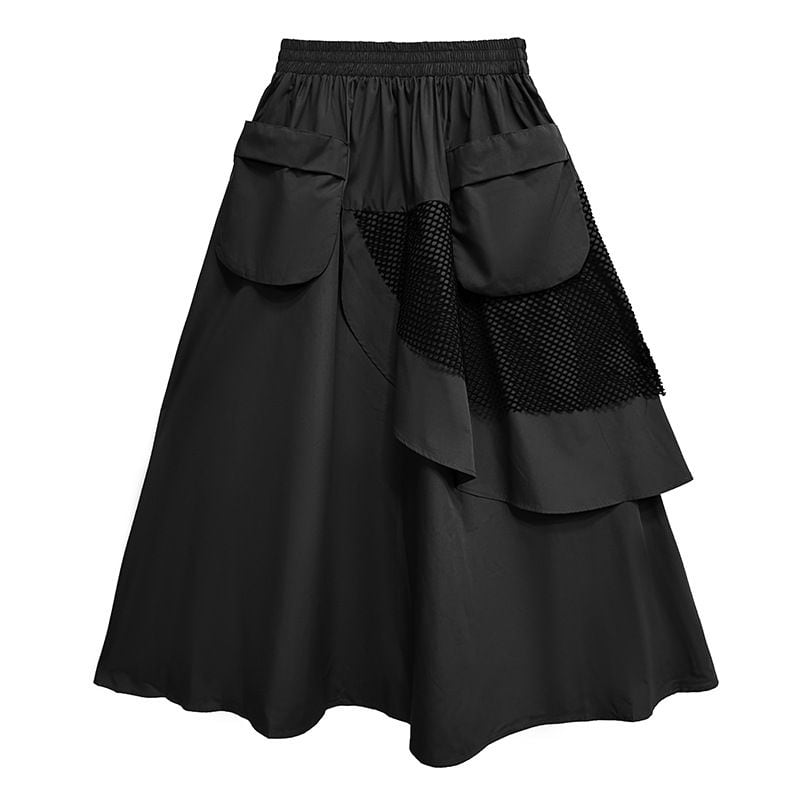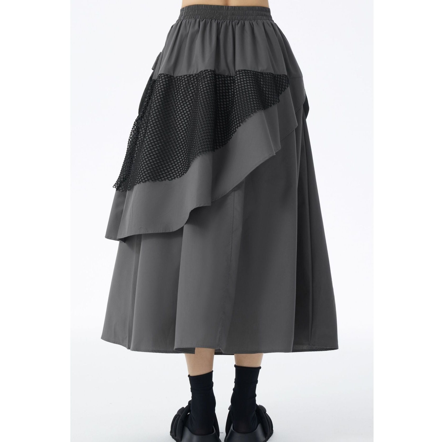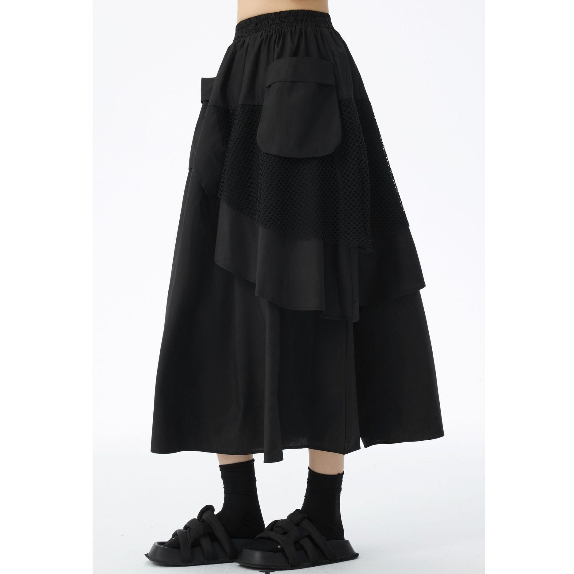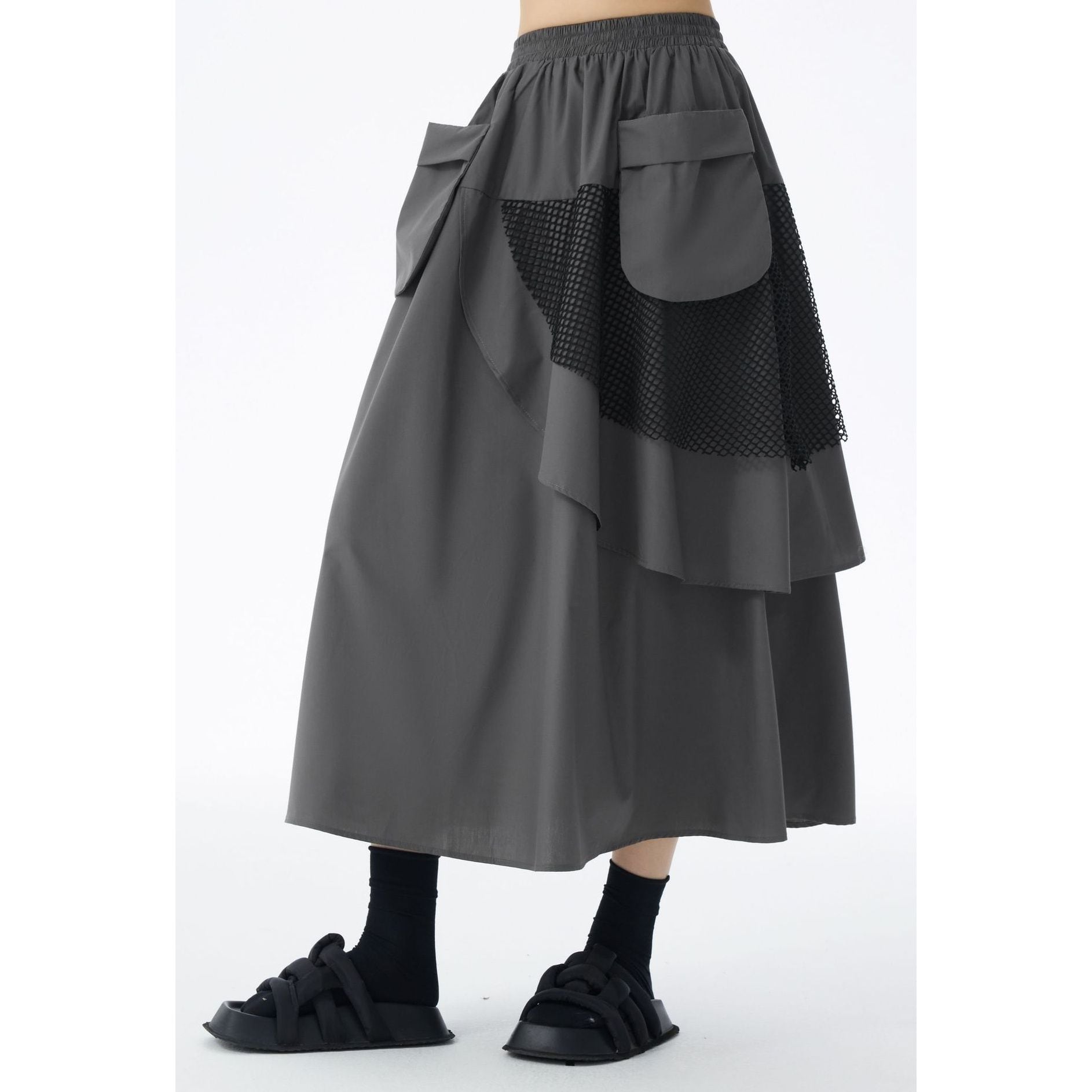 MESH STITCHED FLAP A-LINE MIDI DESIGN SKIRT 2colors M-15141