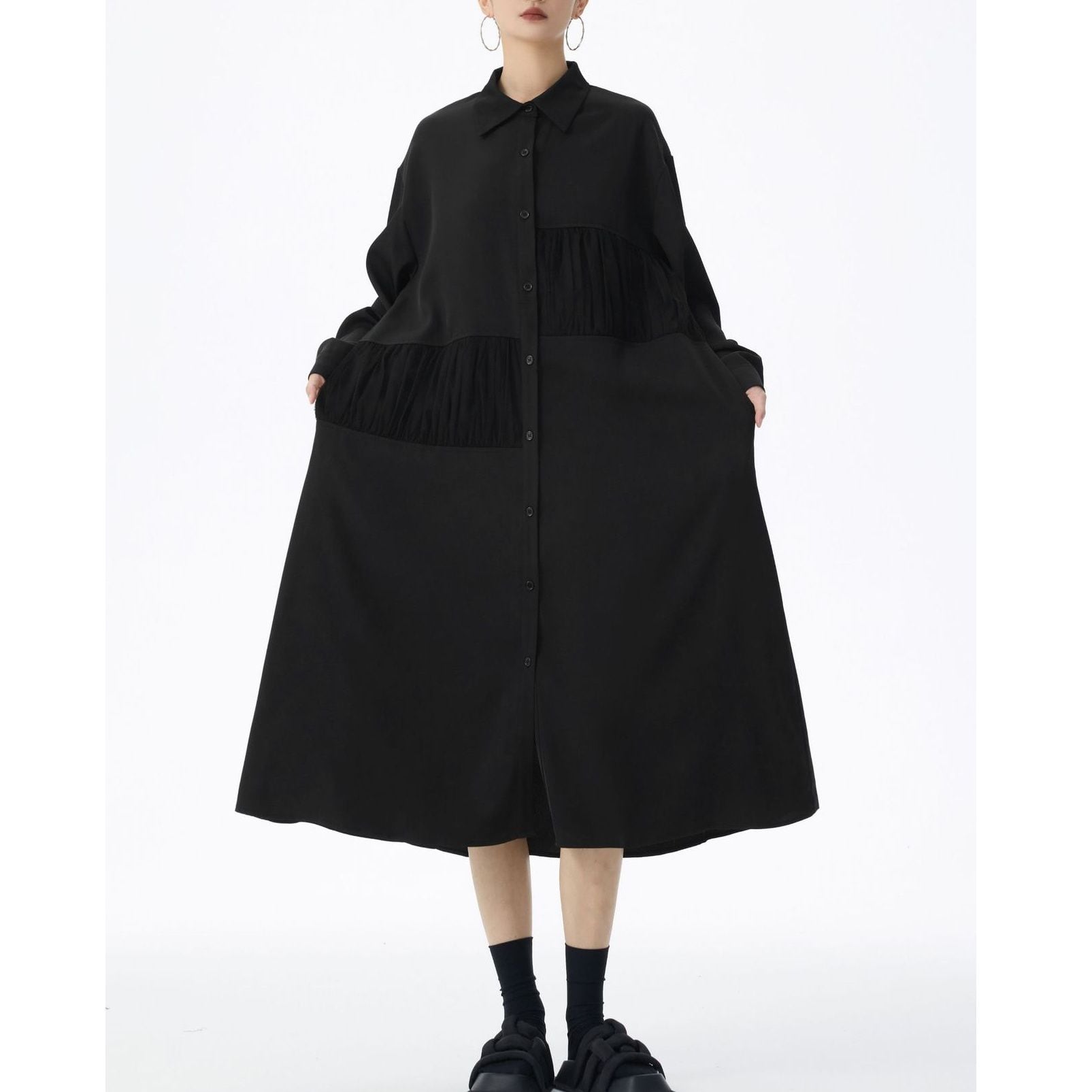 MESH STITCH DESIGN A-LINE MIDI SHIRT DRESS 2colors M-15143