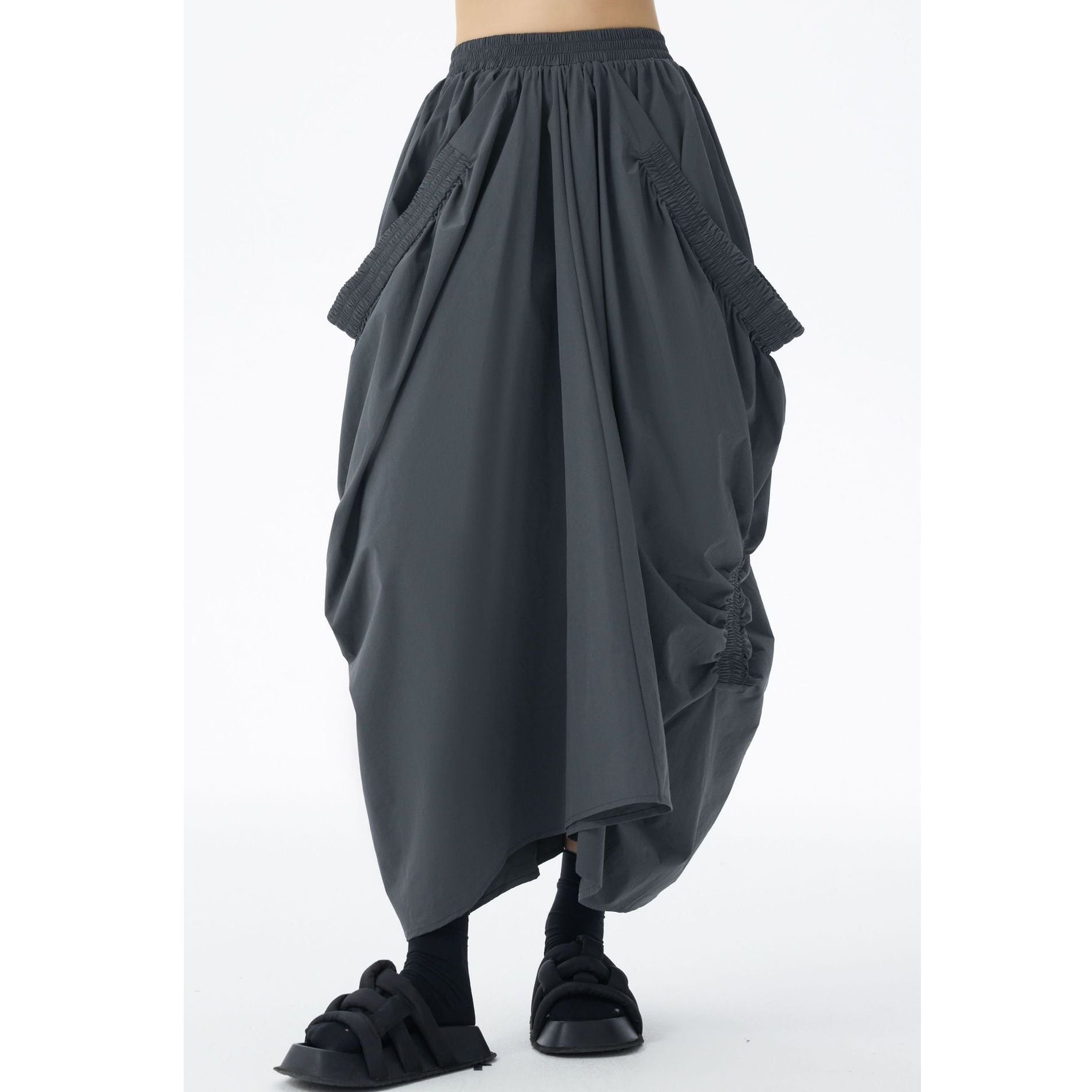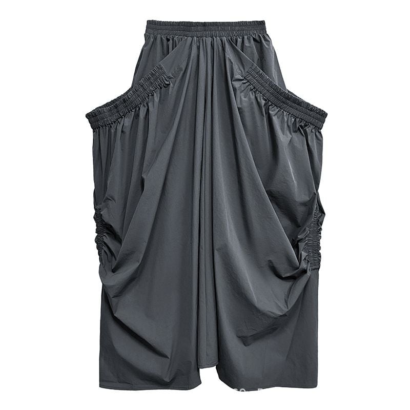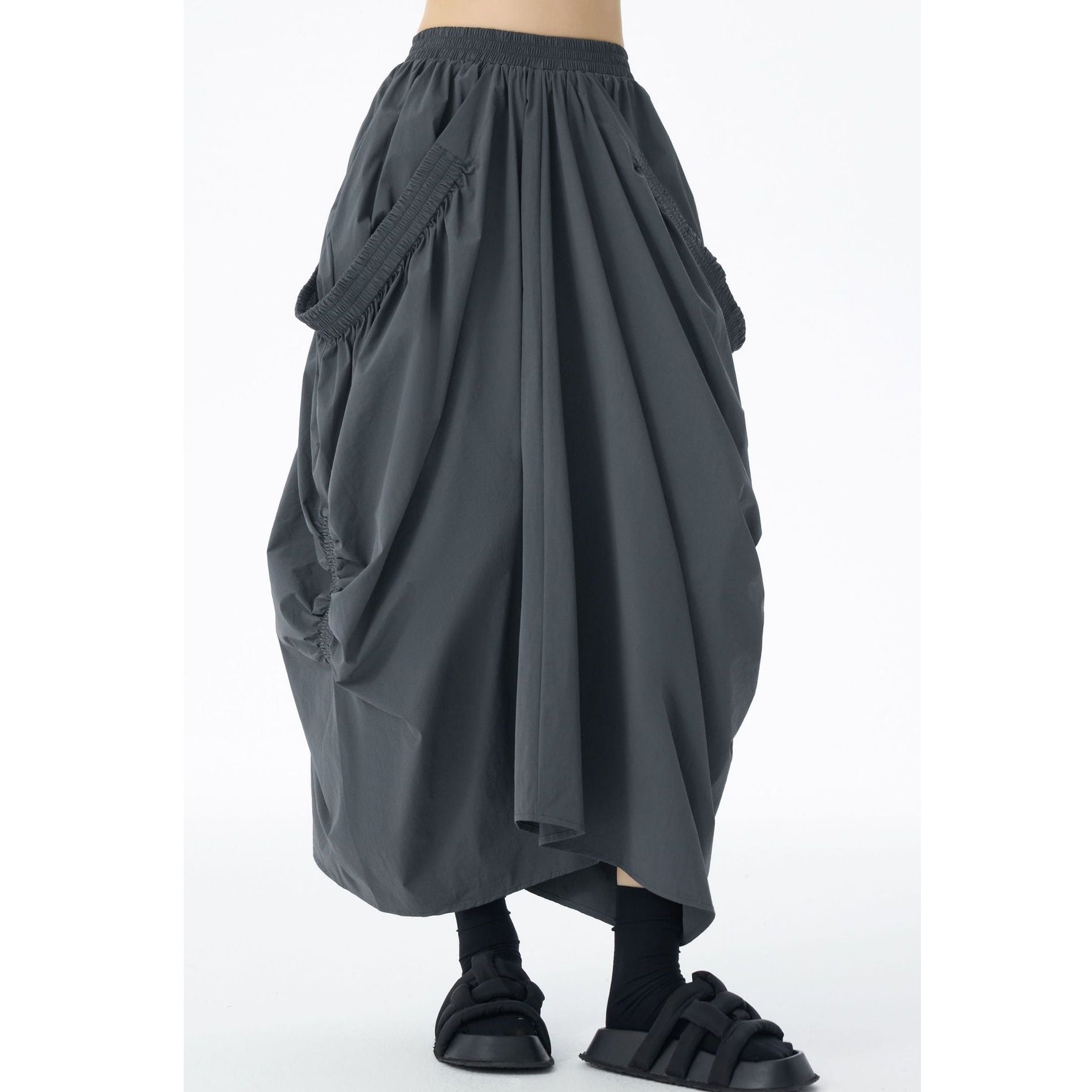GRAY ELASTIC WAIST DRAPE DESIGN LONG SKIRT 1color M-15145