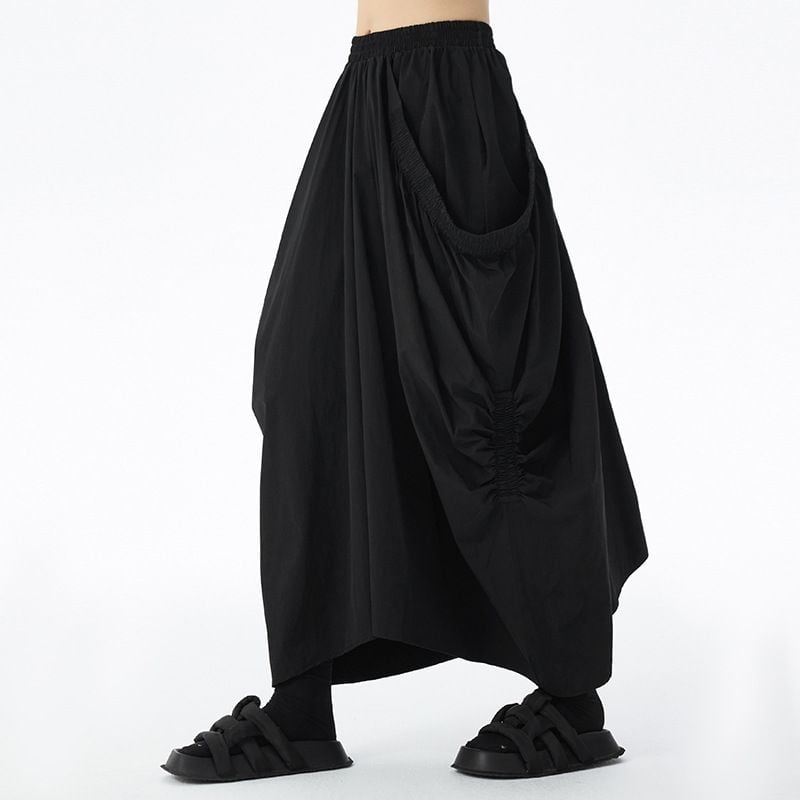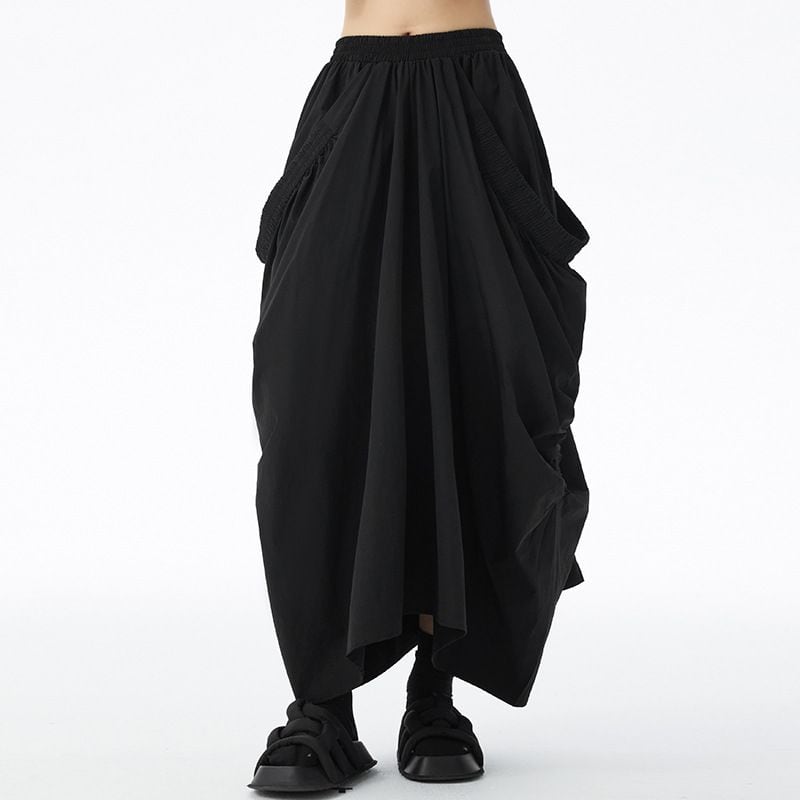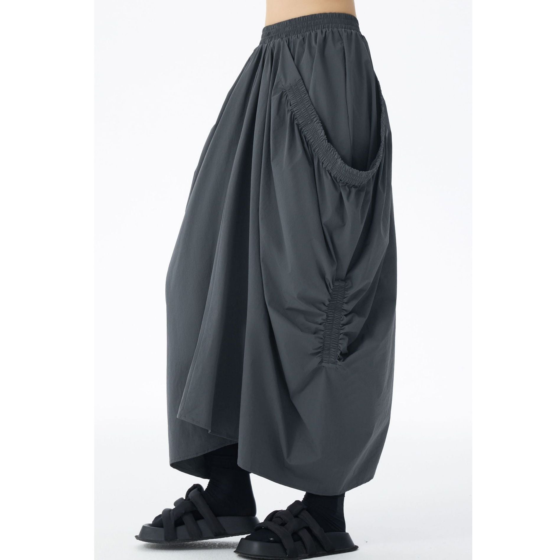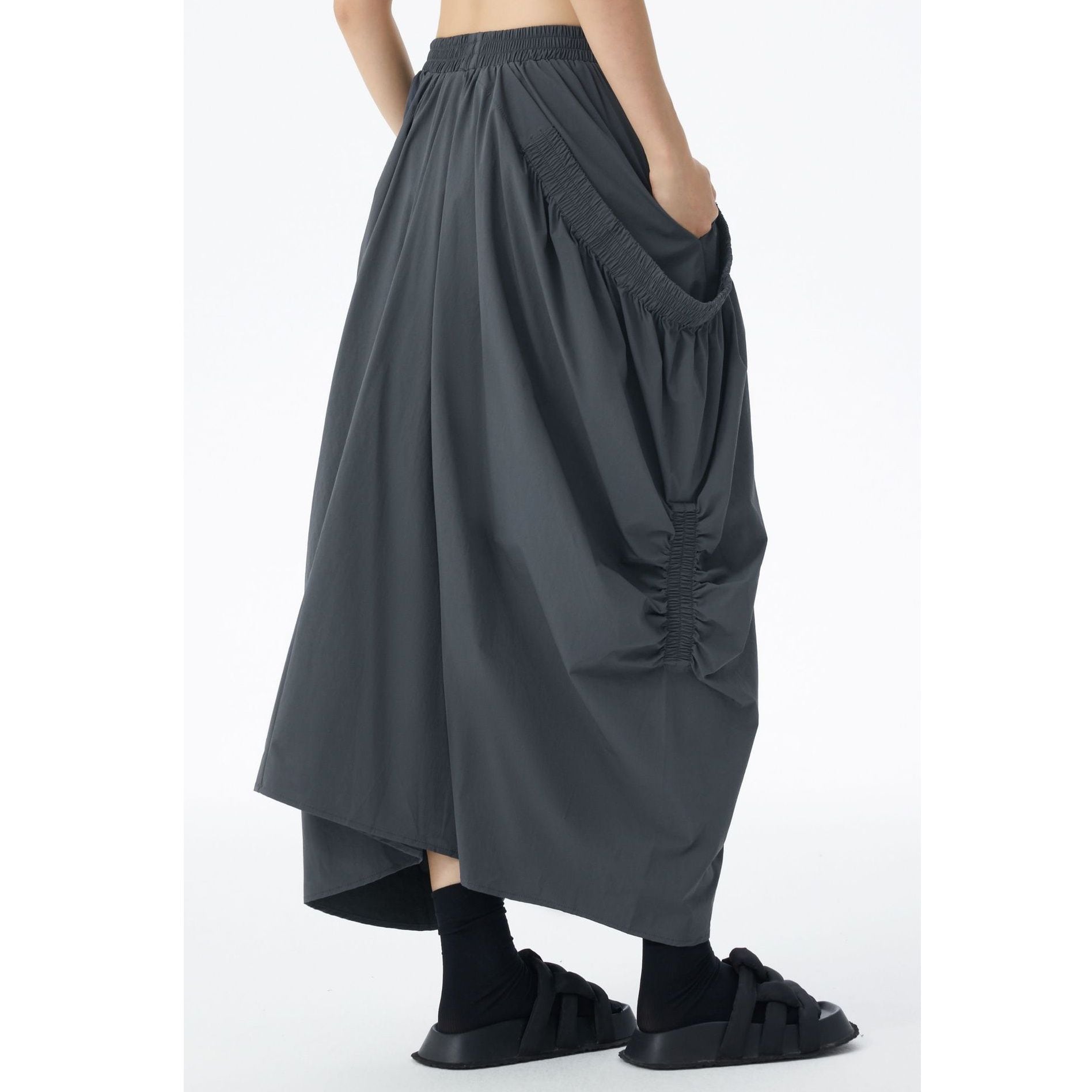 GRAY ELASTIC WAIST DRAPE DESIGN LONG SKIRT 1color M-15145