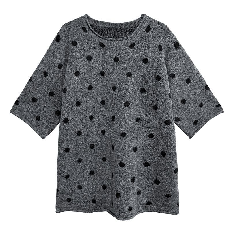 DOT ROUND NECK HALF SLEEVES OVERSIZED PULLOVER KNIT 2colors M-15160