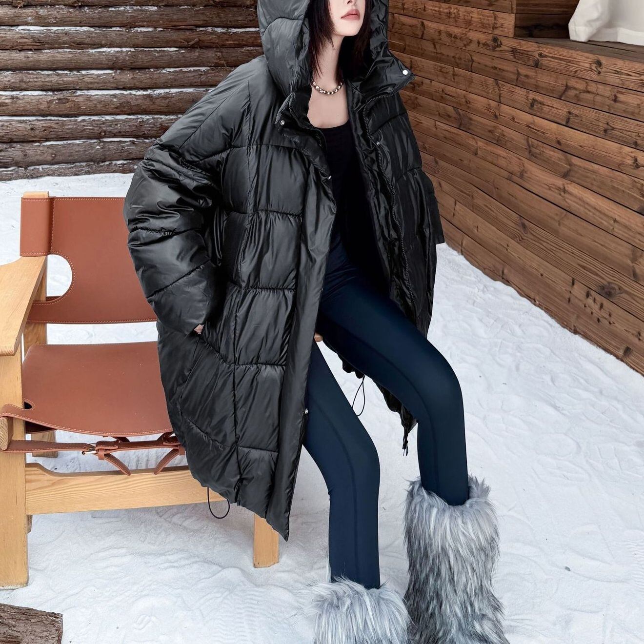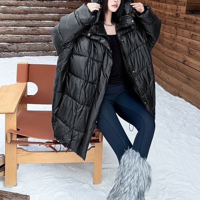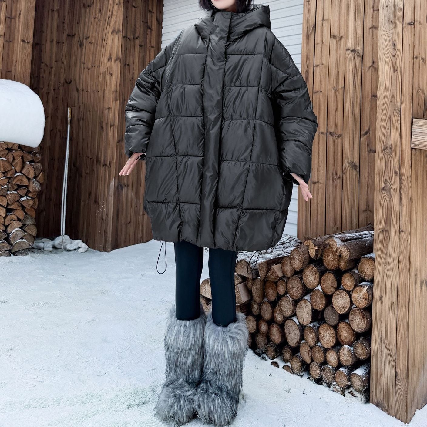 BLACK HOODED WIDE MIDI PADDED COAT 1color M-15169